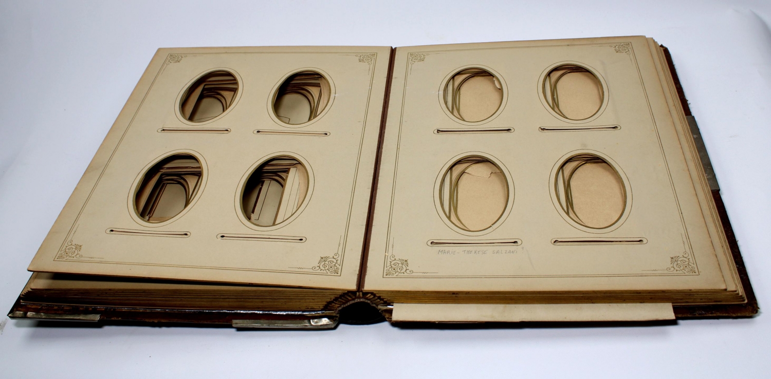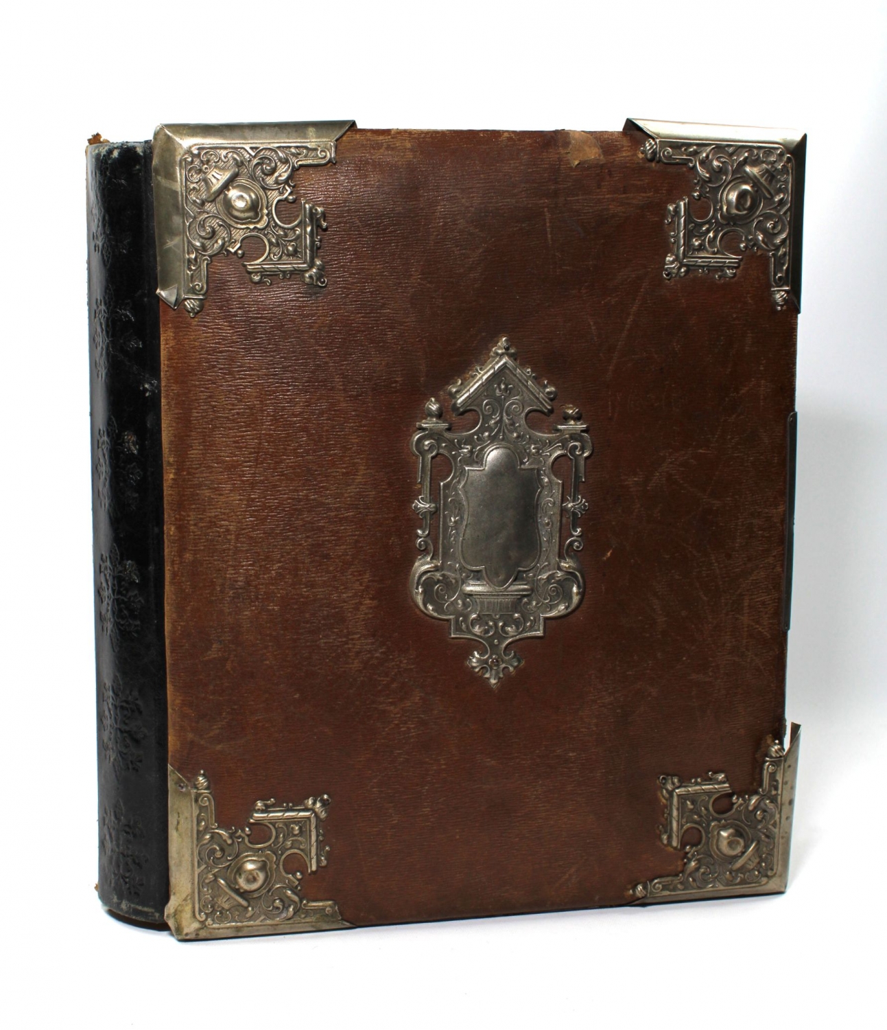 Osmanlı dönemi deriden mamül, metal aplikeli kabin fotoğraf albümü, 26,5x33x6,5 cm