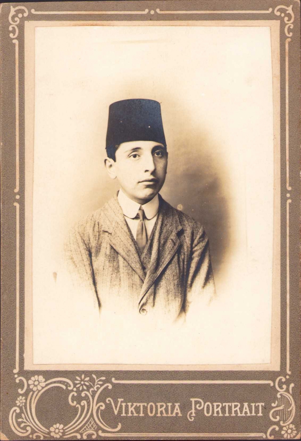 Osmanlı fesli tip kabin fotoğraf, arkası Osmanlıca ithaflı, 7x11 cm.