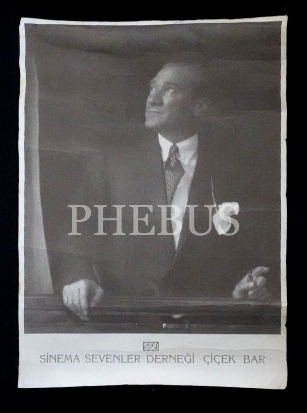 "Sinema Sevenler Derneği Çiçek Bar" tarafından hazırlanan Mustafa Kemal Atatürk posteri, 48x33 cm