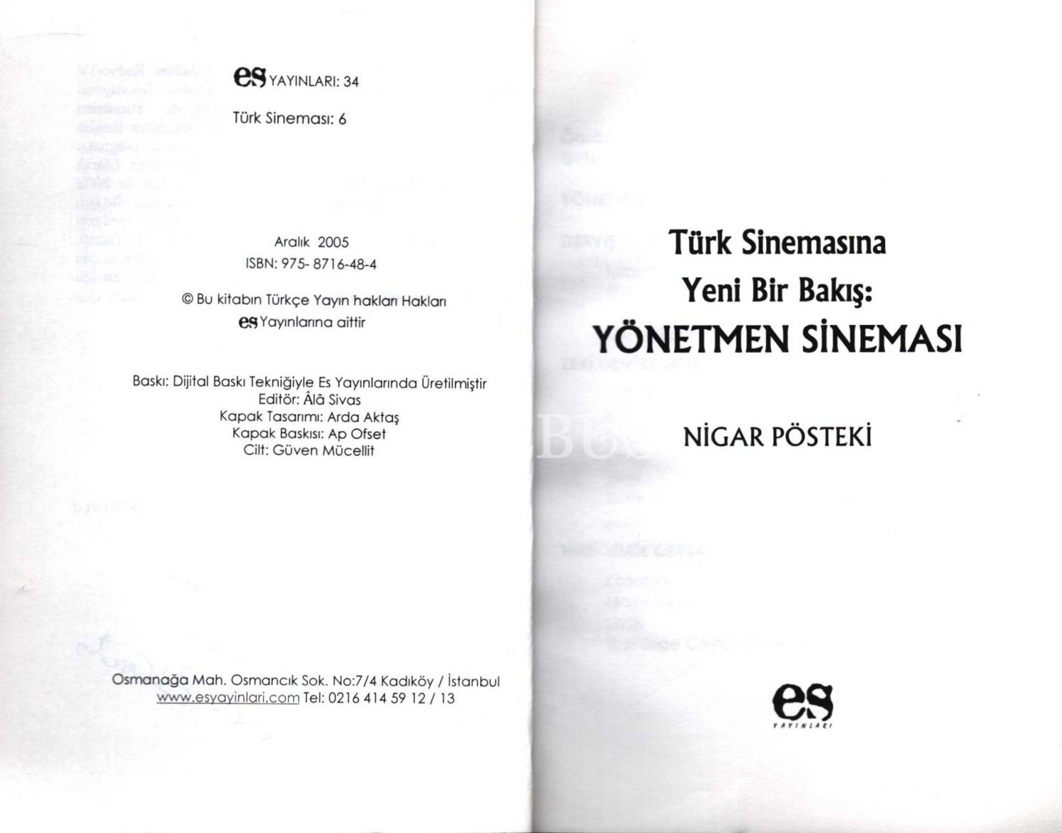 Nigar Pösteki´den ithaflı ve imzalı Türk Sinemasına Yeni Bakış: YÖNETMEN SİNEMASI, Es Yayınları, Aralık 2005, 261 sayfa, 14x20 cm