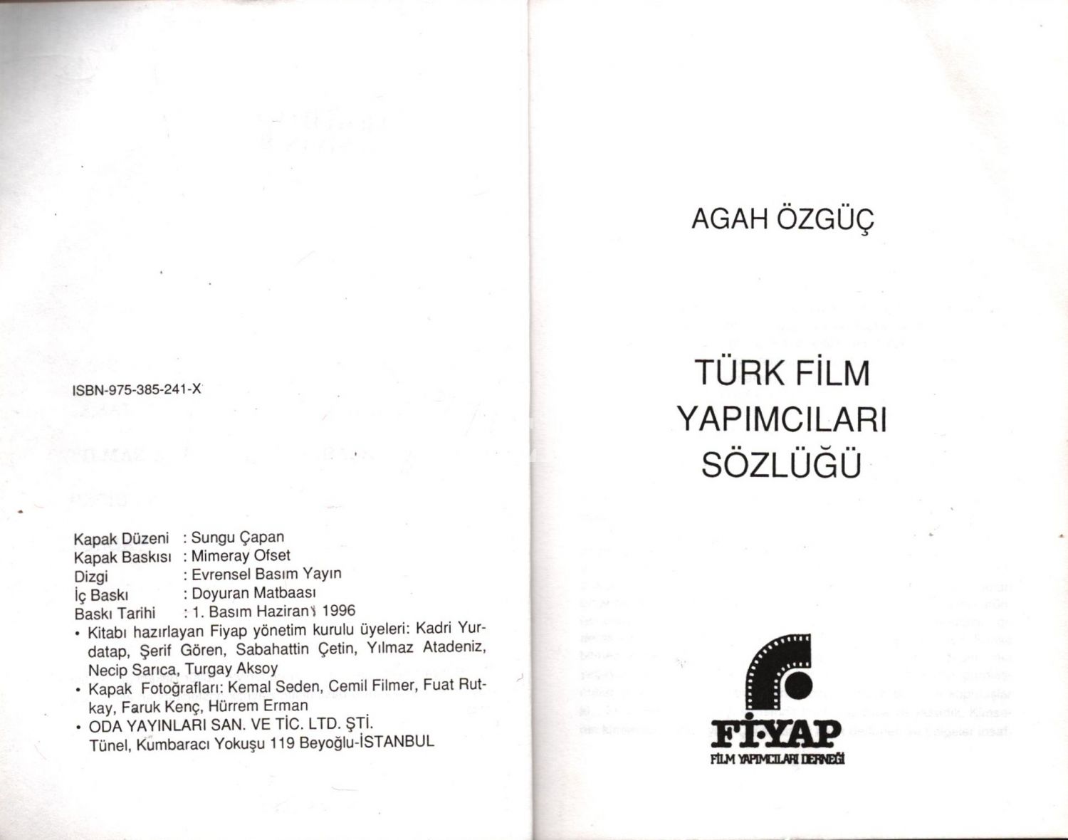 TÜRK FİLM YAPIMCILARI SÖZLÜĞÜ, Agâh Özgüç, FİYAP (Film Yapımcıları Derneği), Haziran 1996, 171 sayfa, 14x20 cm