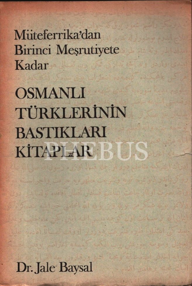 Müteferrika´dan Birinci Meşrutiyete Kadar OSMANLI TÜRKLERİNİN BASTIKLARI KİTAPLAR, Dr. Jale Baysal, Edebiyat Fakültesi Basımevi, İstanbul - 1968, 88 sayfa, 17x24 cm