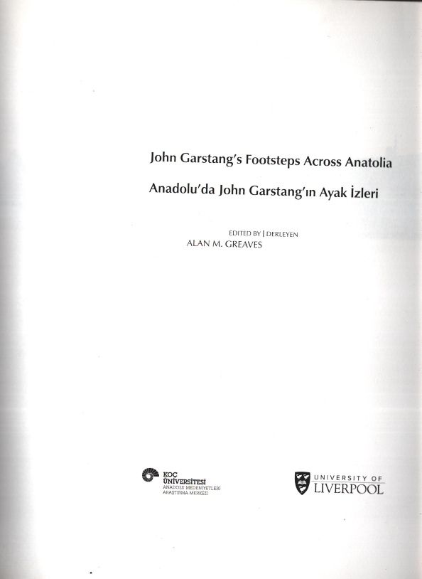 John Garstang´s Footsteps Across Anatolia / Anadolu´da John Garstang´ın Ayak İzleri, derleyen: Alan M. Greaves, Koç Üniversitesi, İstanbul - Eylül 2015, 239 sayfa, 23x28 cm