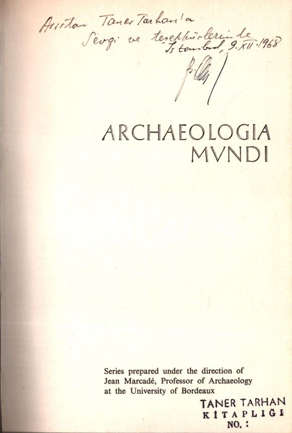 İthaf, "Asistan Taner Tarhan´a sevgi ve teşekkürlerimle. İstanbul, 9.XII.1968 B. Alkım" şeklindedir.