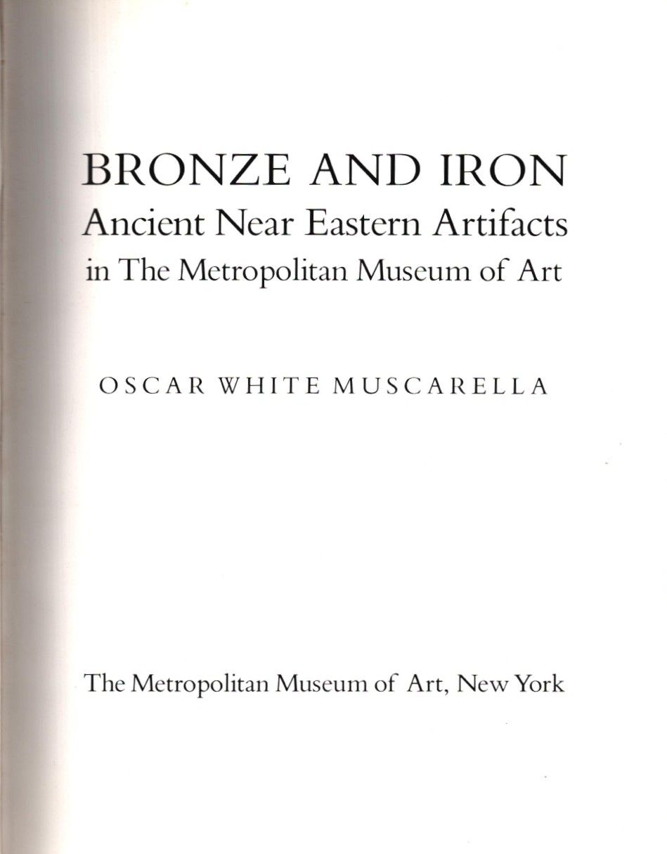 Oscar White Muscarella´dan ithaflı ve imzalı BRONZE AND IRON (Ancient Near Eastern Artifacts in The Metropolitan Museum of Art), New York - 1988, 501 sayfa, 22x29 cm