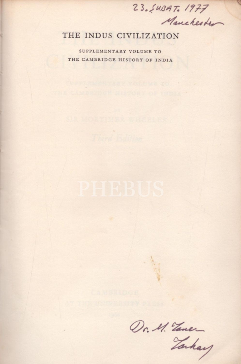 THE INDUS CIVILIZATION (Supplementary Volume to the Cambridge History of India), Sir Mortimer Wheeler, Cambridge at the University Press, 1968, 143 sayfa metin + görseller, 15x23 cm