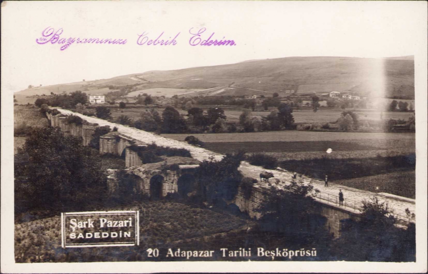 Adapazar Tarihi Beşköprüsü, Foto Şark Pazarı Sadeddin, bayram tebrikli, Osmanlıca ithaflı.