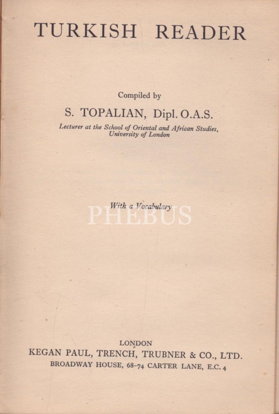 TURKISH READER, S. Topalian, Kegan Paul, Trench, Trubner & Co., London - 1940, 92 sayfa, 13x19 cm