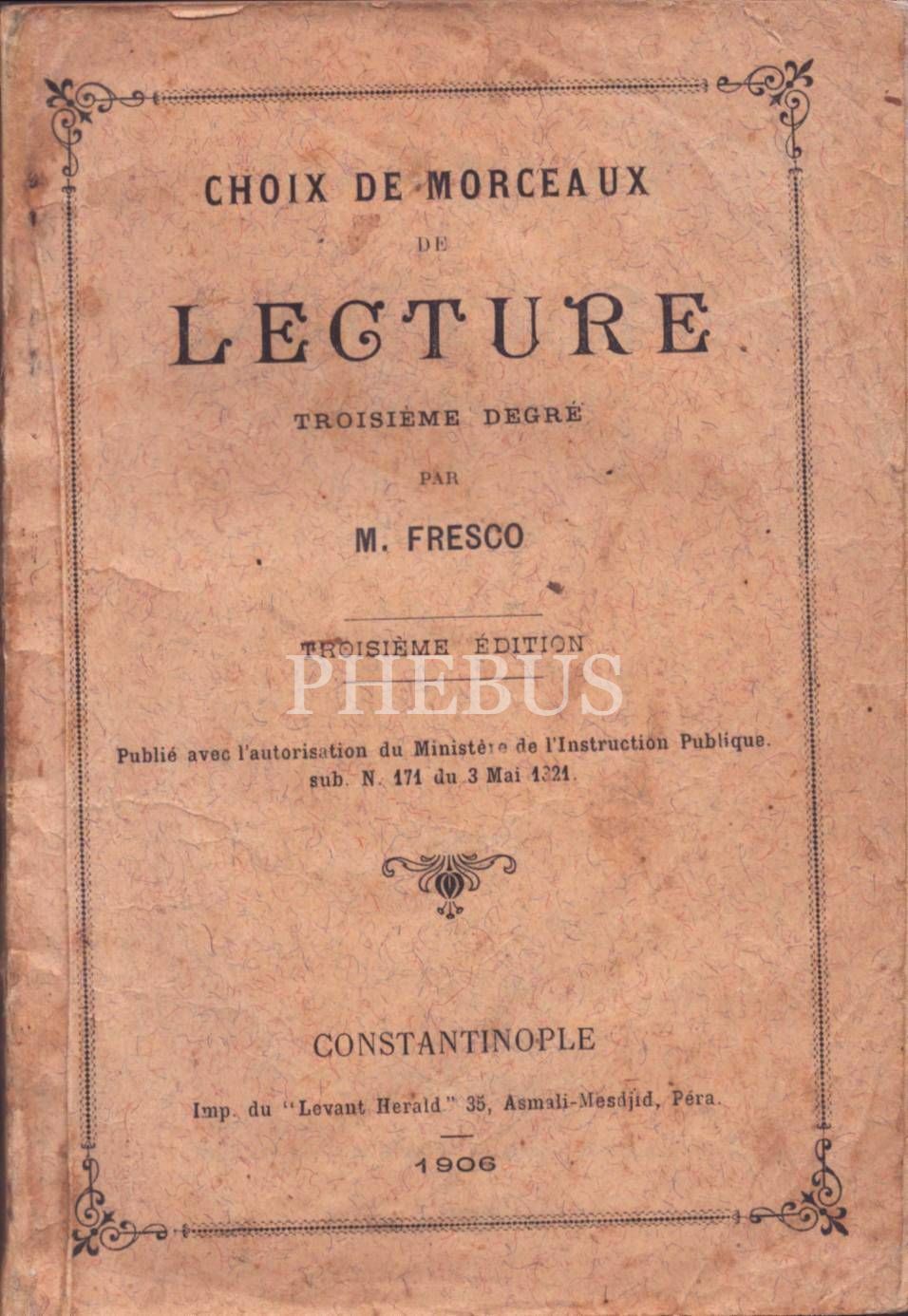 CHOIX DE MORCEAUX DE LEGTURE (Troisieme Degre), M. Fresco, Levant Herald, Constantinople - 1905, 176 sayfa, 13x18 cm