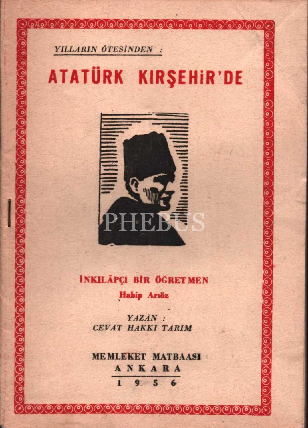 Cevat Hakkı Tarım´dan Samsun Valisi Turgut Başkaya´ya ithaflı ve imzalı ATATÜRK KIRŞEHİR´DE / İNKILÂPÇI BİR ÖĞRETMEN: Habip Arıöz, Memleket Matbaası, Ankara - 1956, 48 sayfa, 14x20 cm