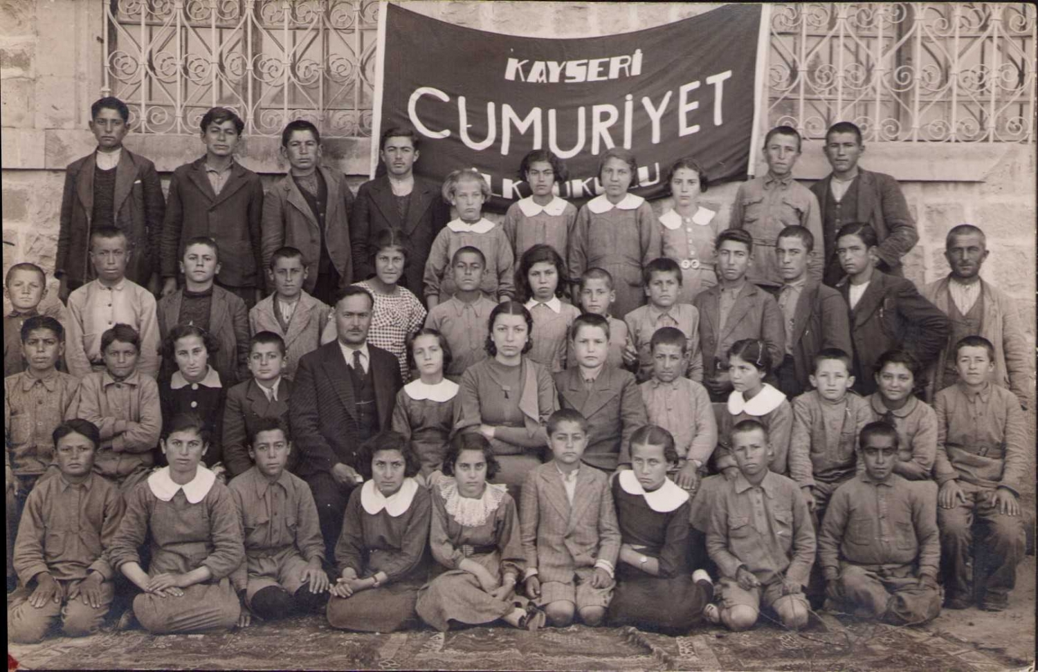 Kayseri Cumhuriyet İlkokulu, öğrenciler ve muallim.