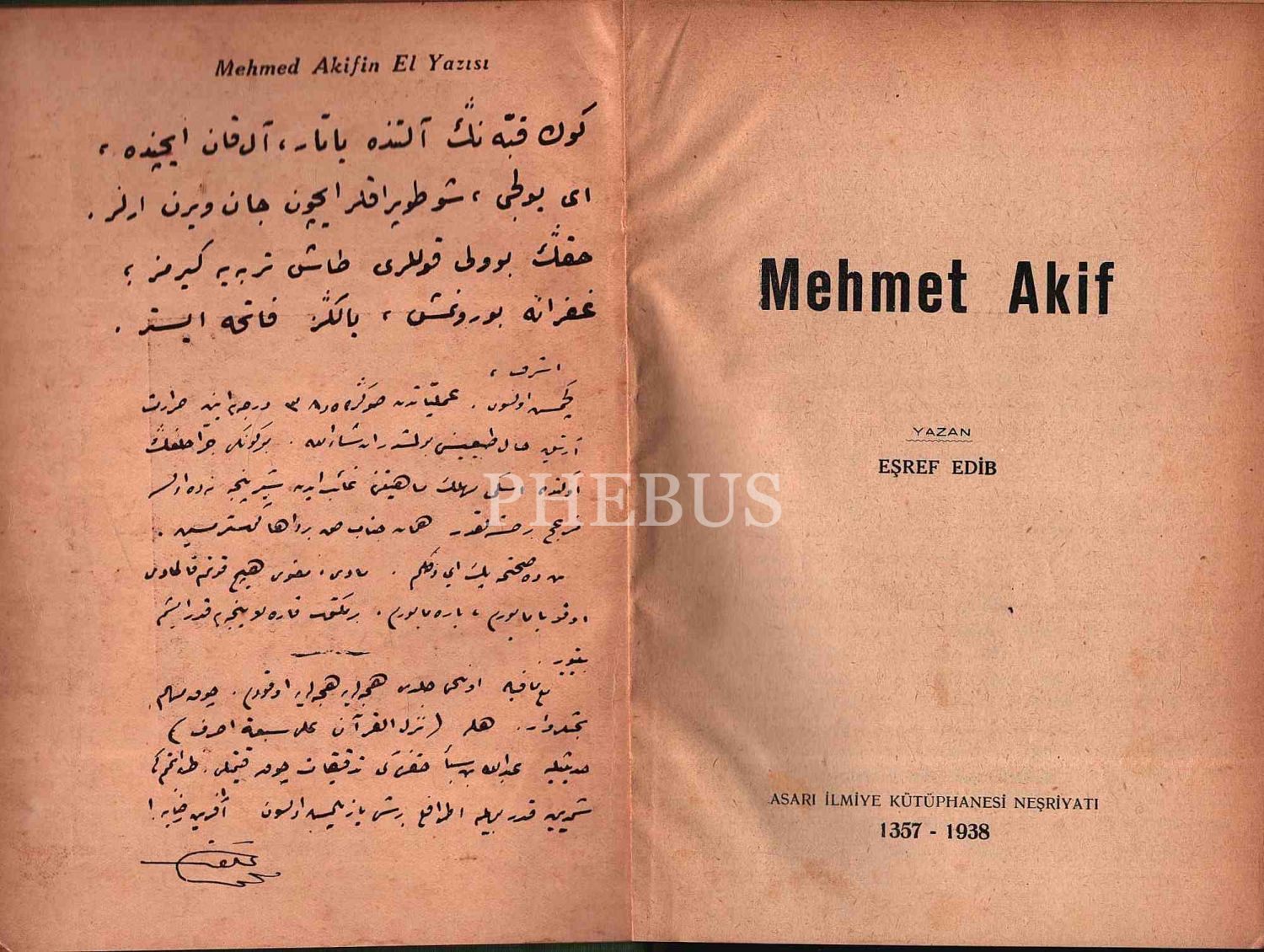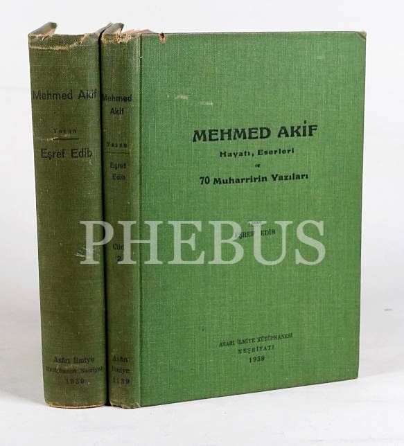 MEHMED AKİF (Hayatı, Eserleri ve 70 Muharririn Yazıları) - 2 Cilt, Eşref Edib, Asarı İlmiye Kütüphanesi Neşriyatı, 1939, 712+322 sayfa, 15x20 cm