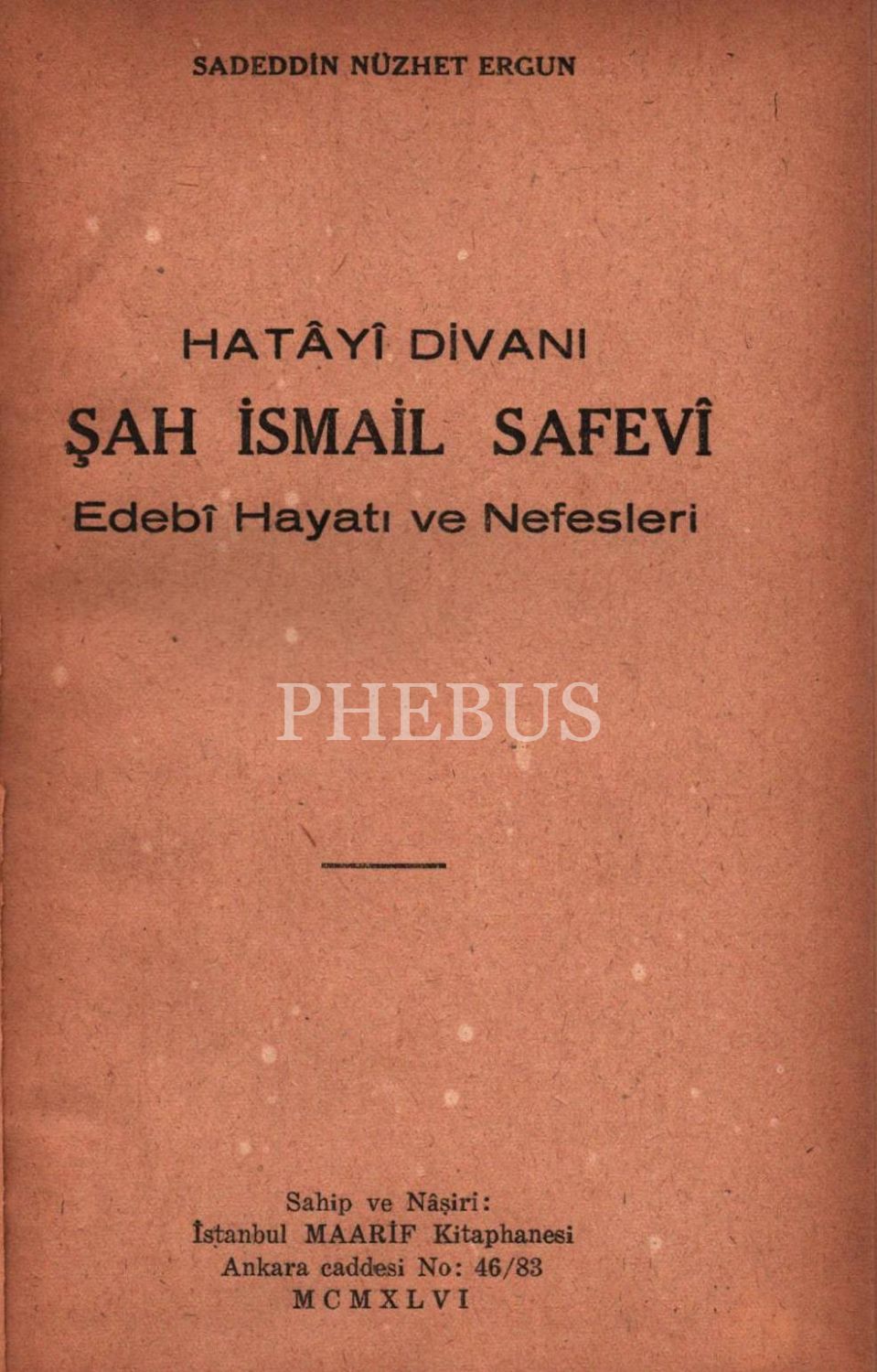 HATÂYÎ DİVANI ŞAH İSMAİL SAFEVÎ (Edebî Hayatı ve Nefesleri), Sadeddin Nüzhet Ergun, İstanbul Maarif Kitaphanesi, 1946, 245 sayfa, 14x21 cm