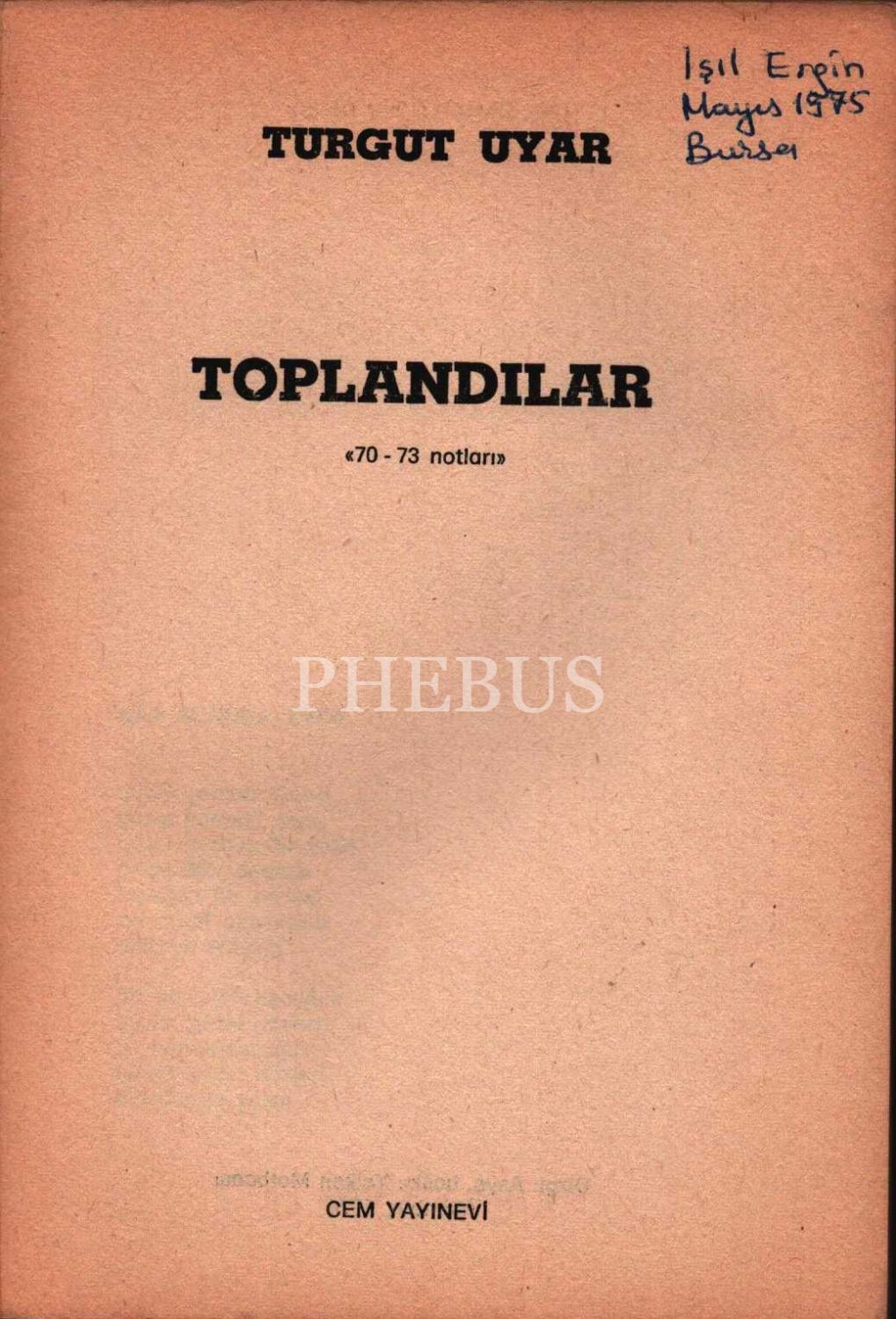 TOPLANDILAR "70-73 Notları", Turgut Uyar, Cem Yayınevi, İstanbul - 1974, 141 sayfa, 14x20 cm