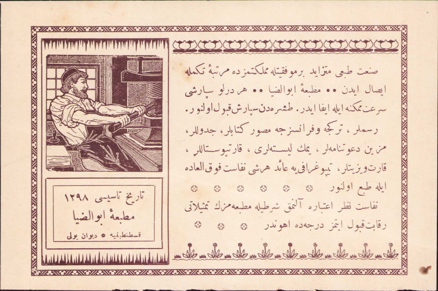 Osmanlıca Matbaa-i Ebuzziya Matbaası etiketi, 15x10 cm.