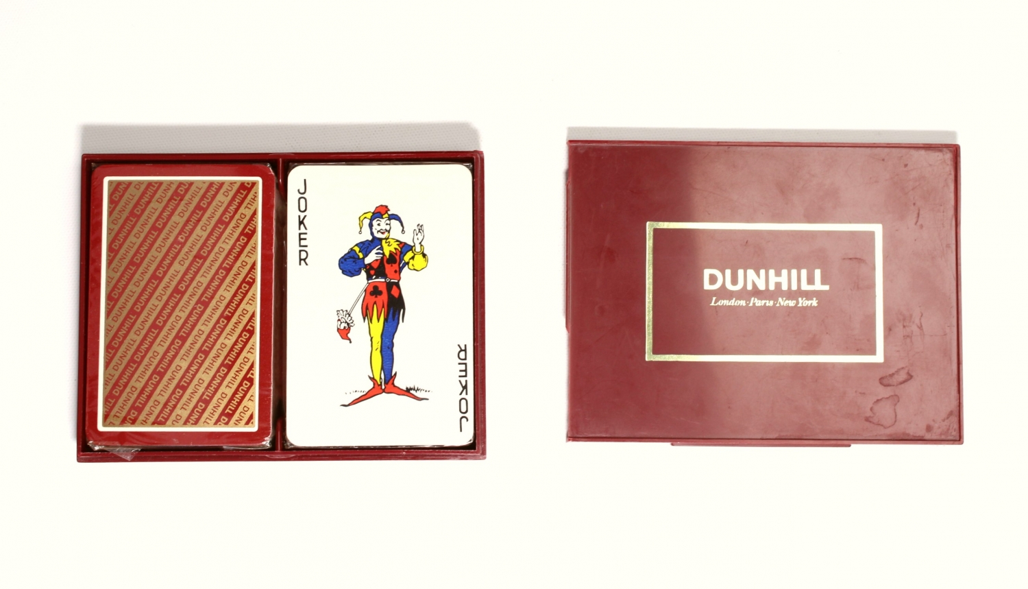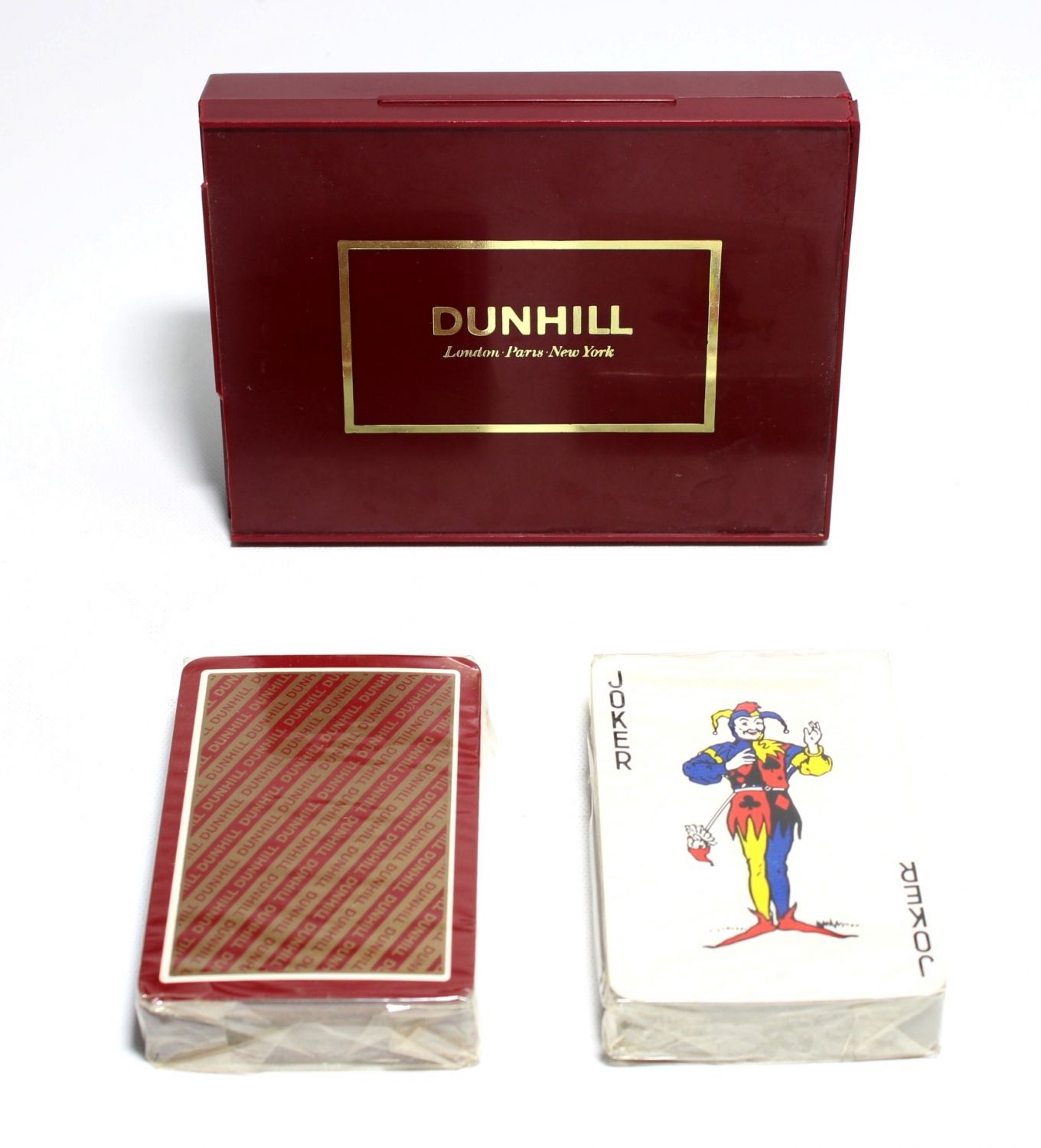 Dunhill kutusunda açılmamış 2 paket iskambil destesi, 13x3x3 cm