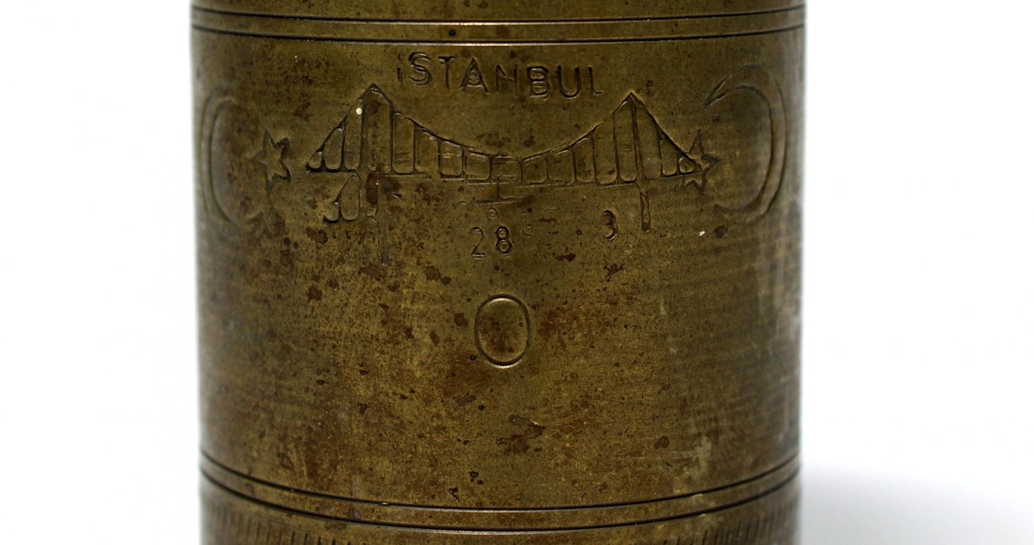 Pirinçten mamül, İstanbul Boğaziçi Köprüsü damgalı kahve değirmeni, 4x19 cm