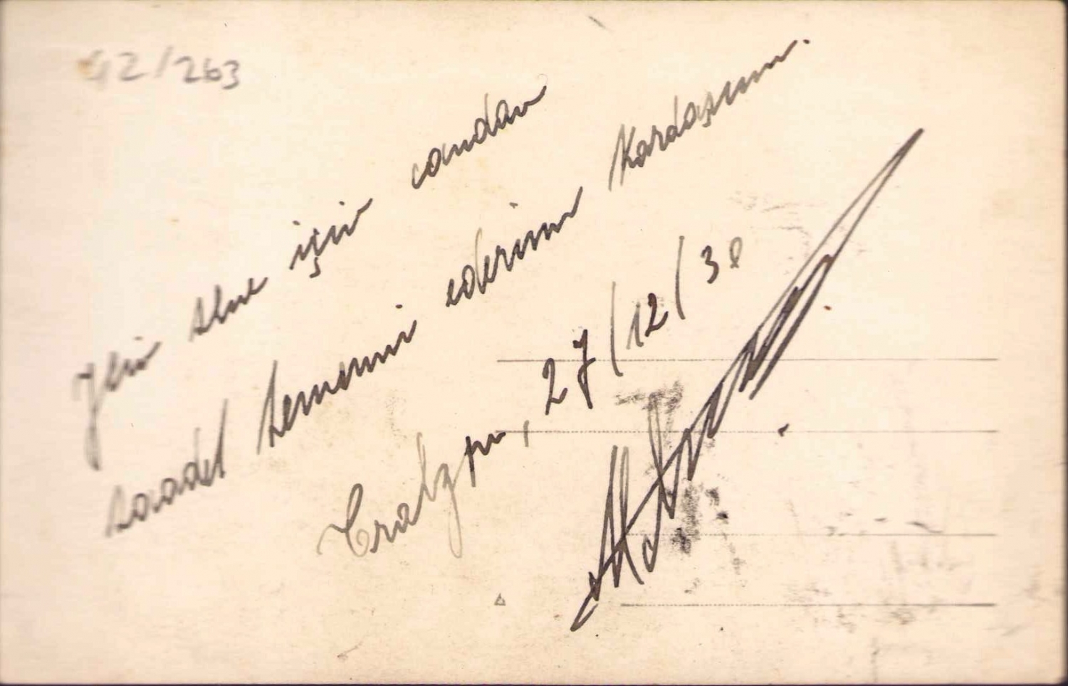 Trabzon Soğuksu, arkası ithaflı, 1930 tarihli