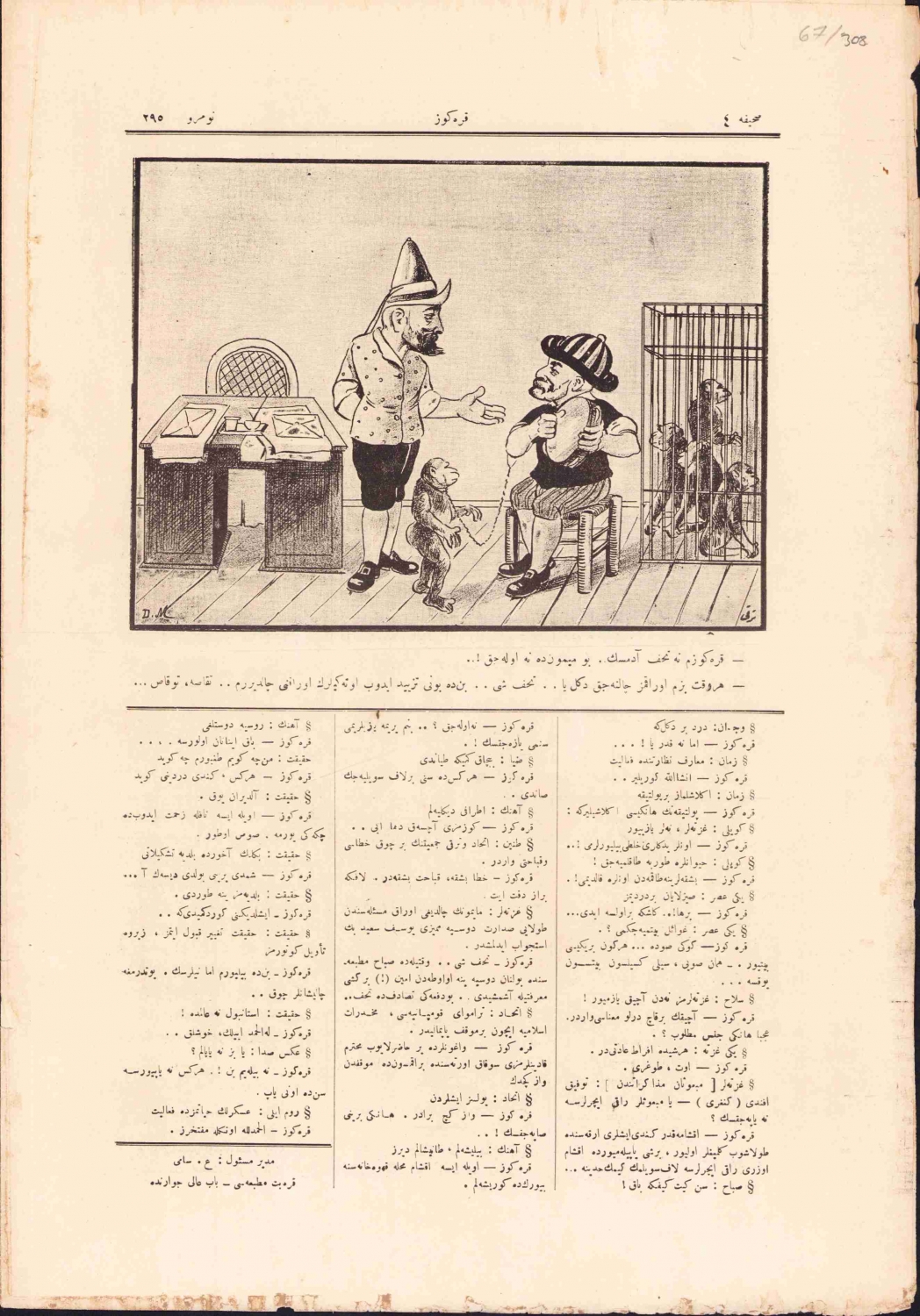 Osmanlıca 1327 tarihli 'Karagöz' Mizah Gazetesi, resimli, 4 sayfa, 28x40 cm.