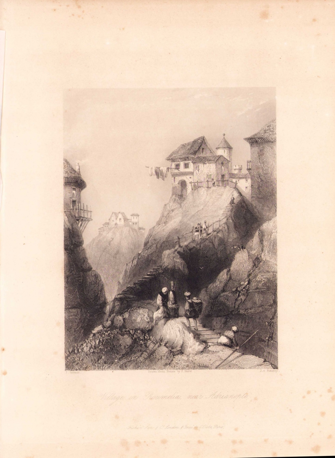 Edirne Rumeli köyü gravürü, 21x29 cm.