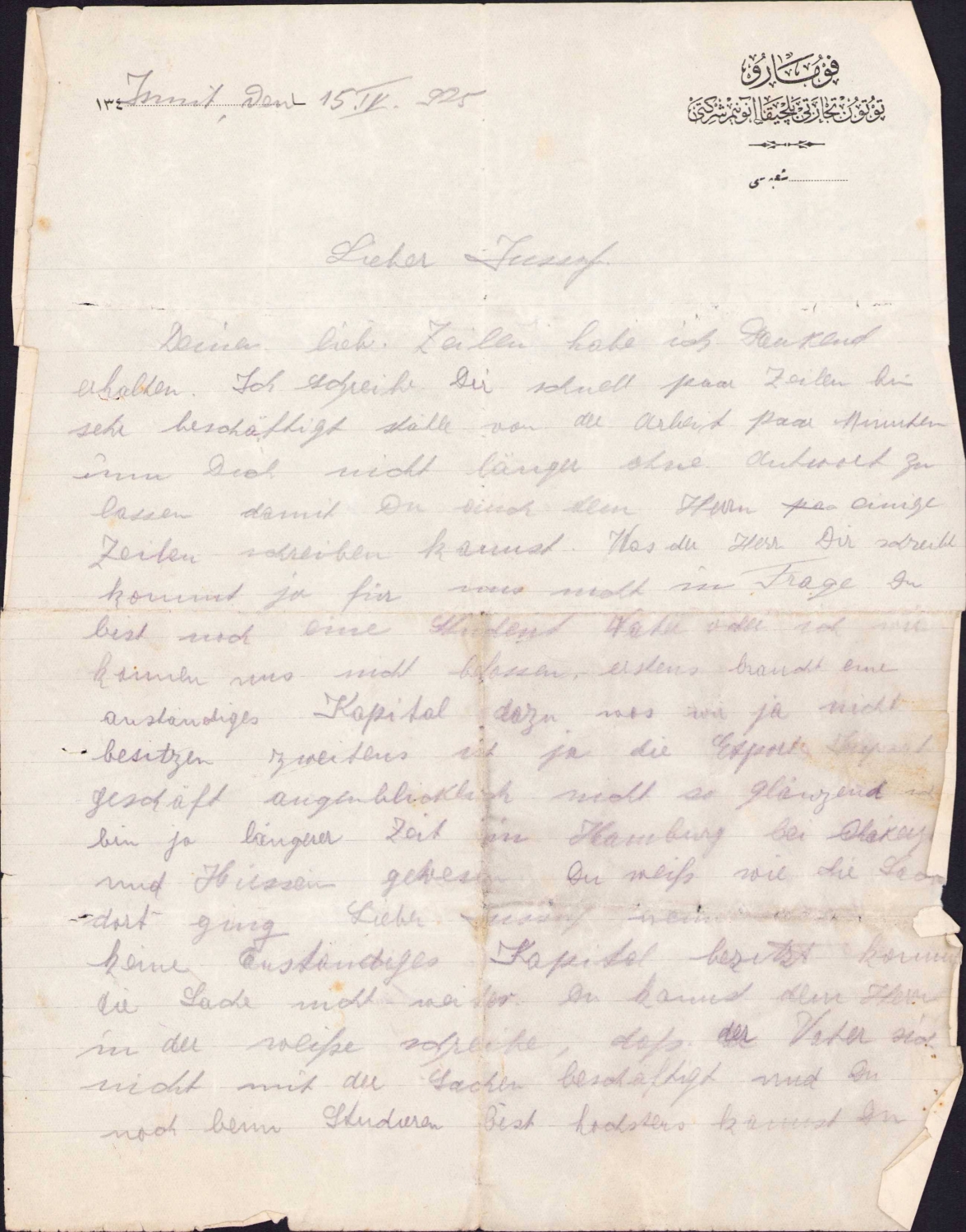 Osmanlıca Fomaru Tütün Ticareti Belçika Anonim Şirketi antetli doküman, 20x28 cm.