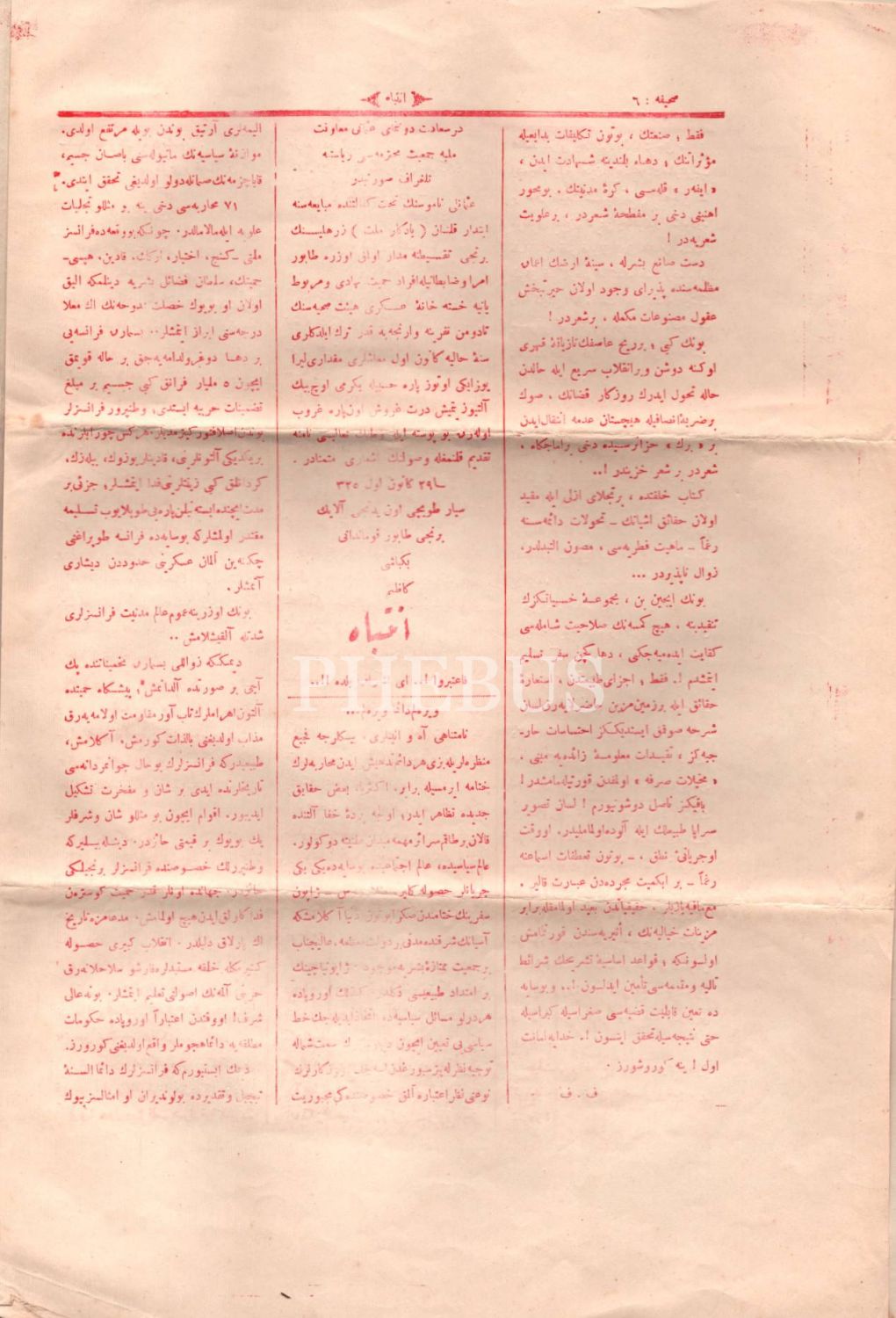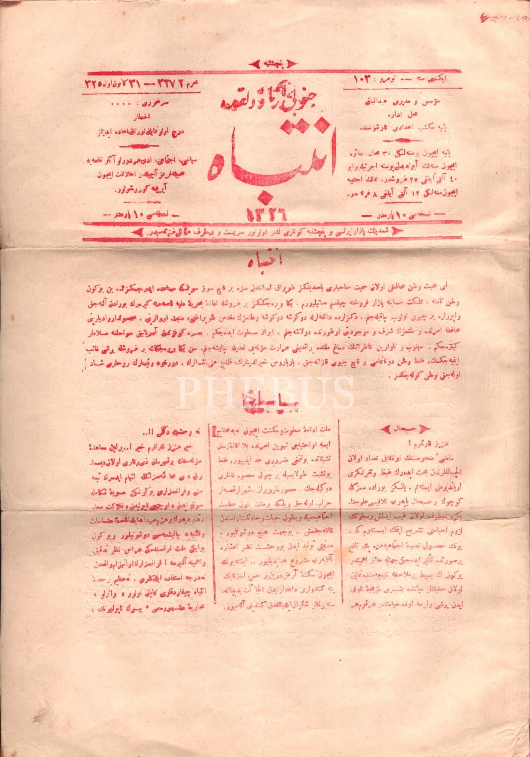 "Serbest ve bîtaraf Osmanlı gazetesi" CENÛBÎ ARNAVUTLUK´DA İNTİBÂH (No: 103), 31 Kanunuevvel 1325, 28x41 cm