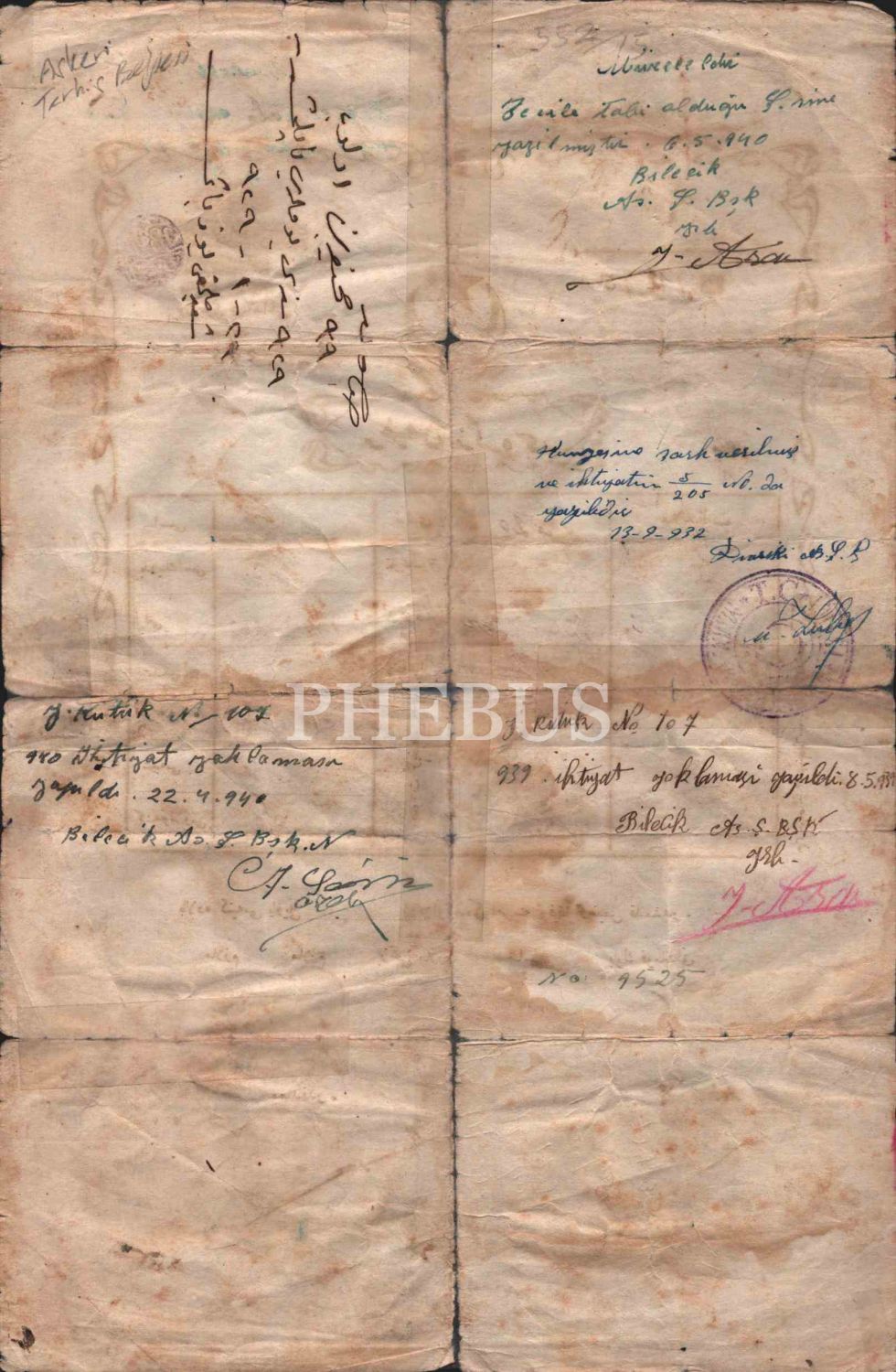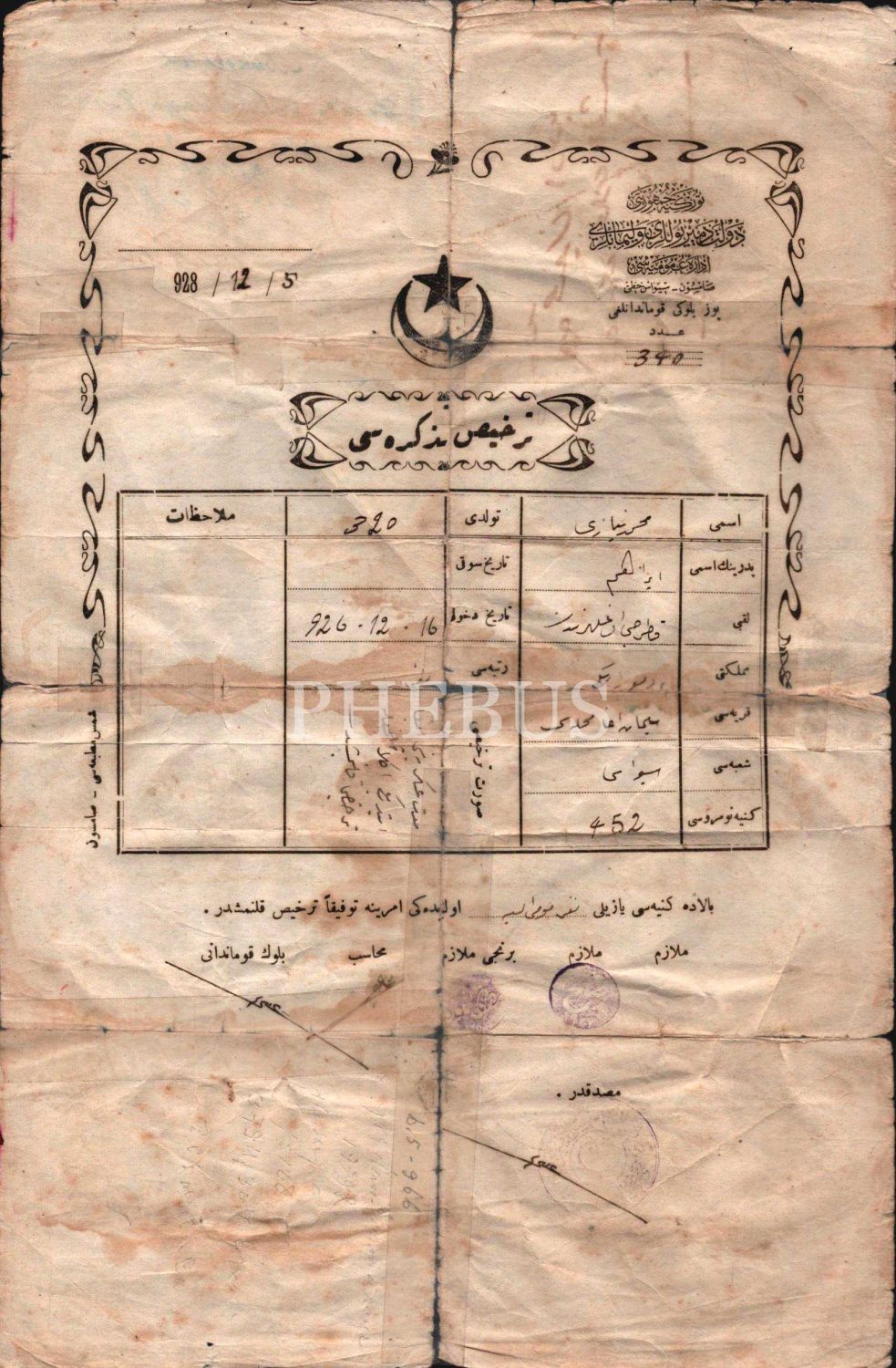Devlet Demiryolları ve Limanları terhis tezkiresi, Sivas 1928, 20x31 cm