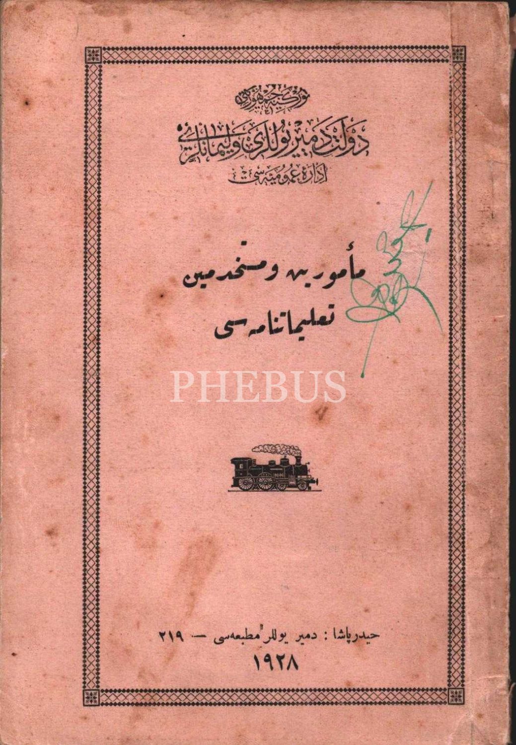 Devlet Demiryolları ve Limanları yayınlarından ME´MÛRÎN VE MÜSTAHDİMÎN TA´LÎMÂTNÂMESİ, Haydarpaşa/İstanbul 1928, 46 s., 13x19 cm