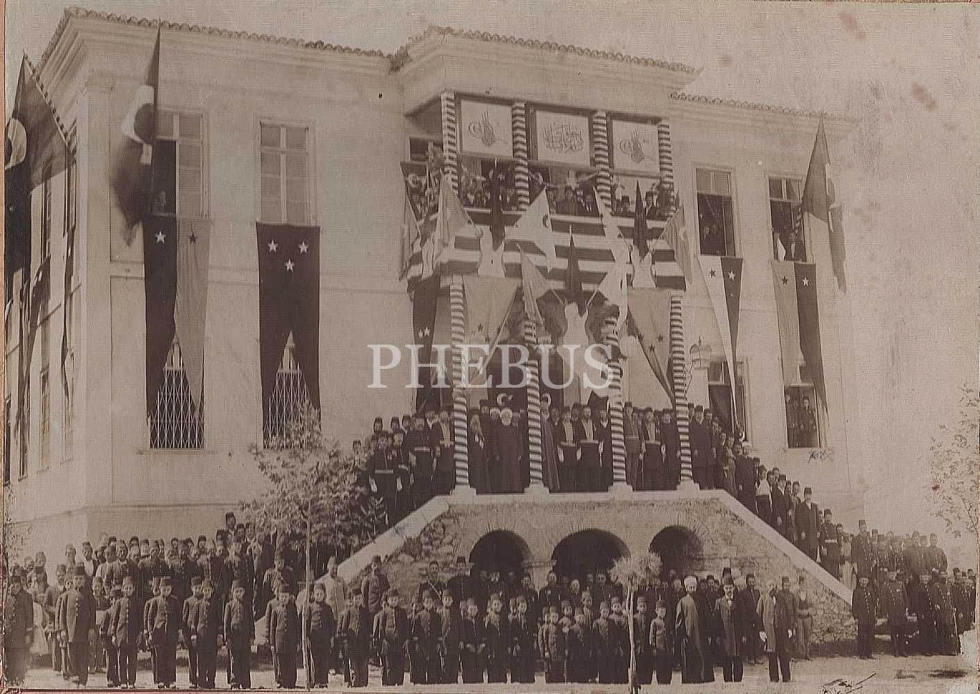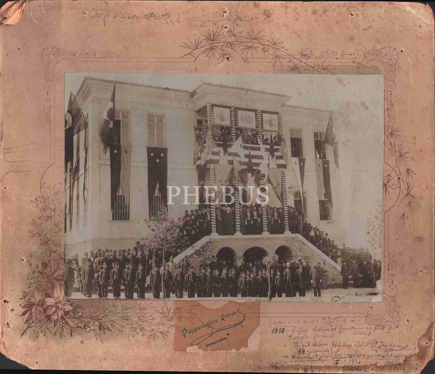 Serfiçe (Yunanistan) Hükümet Konağı önünde Cülus töreni hatırası, 1318, Pappazoglou Freres damgalı, paspartu: 30x35 cm