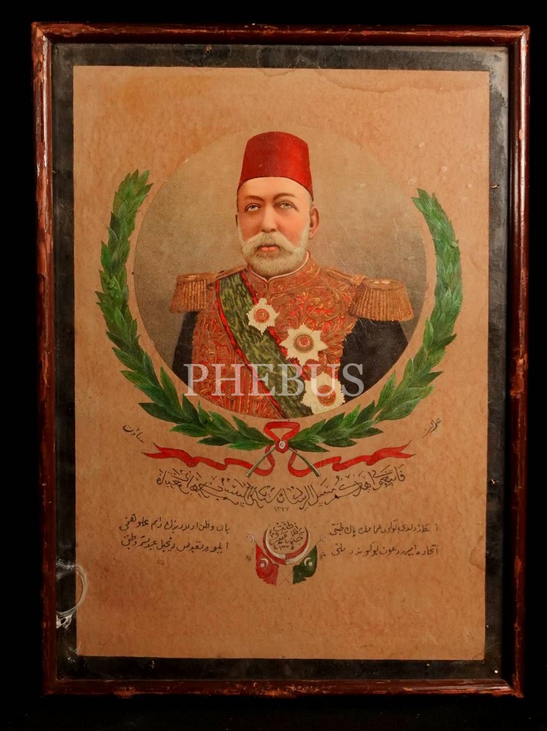 Sultan Mehmed Reşad görselli, Meşrutiyet orijinal çizim afiş, çerçeve: 29x40 cm