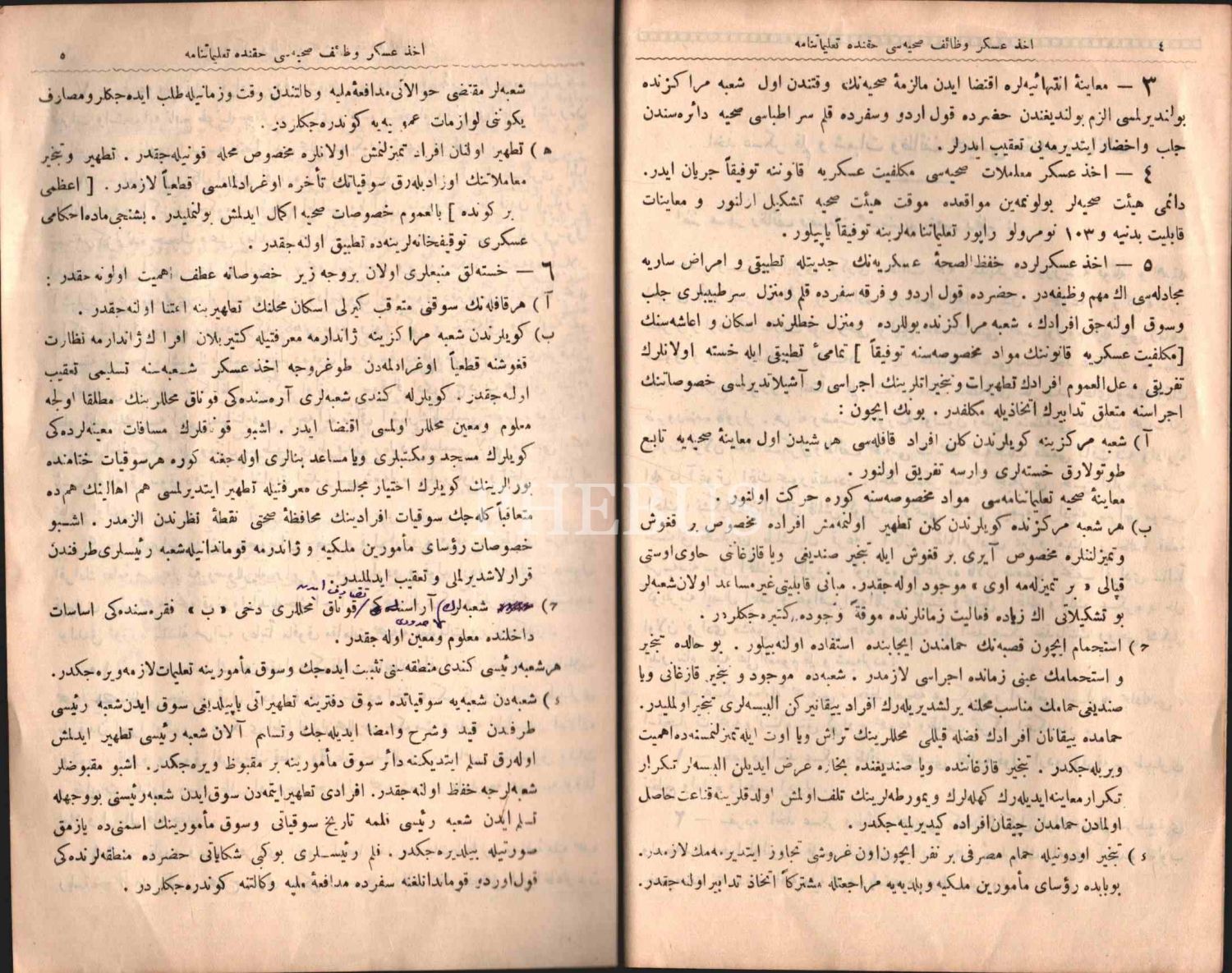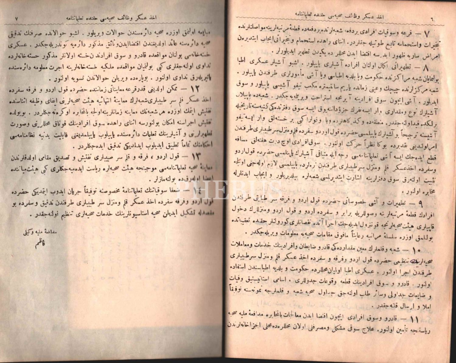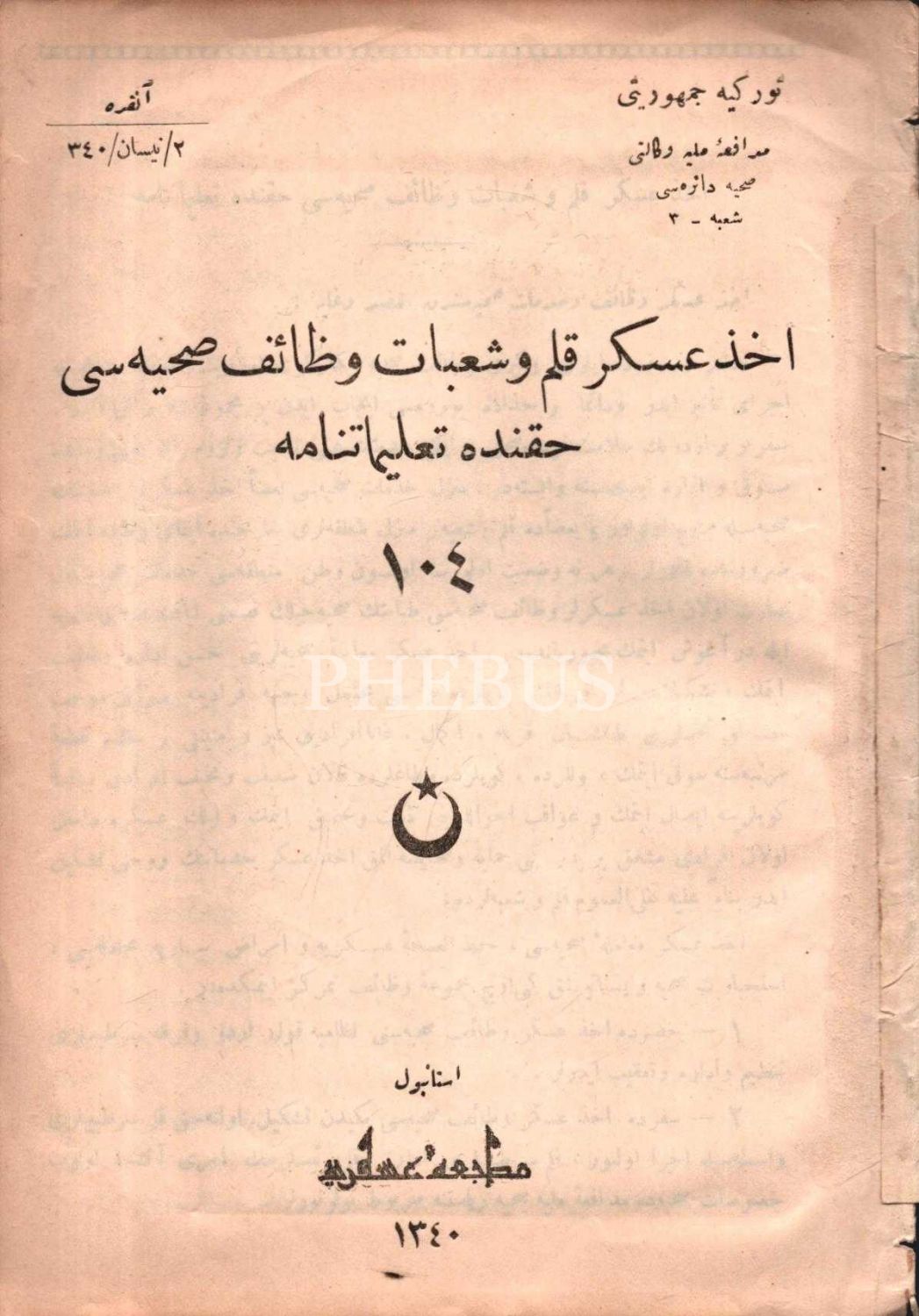 Ahz-ı Asker Kalem ve Şuabât Vezaif-i Sıhhiyyesi Hakkında Talimatname, Matbaa-i Askeriye, İstanbul 1340, 7 s., 15x22 cm