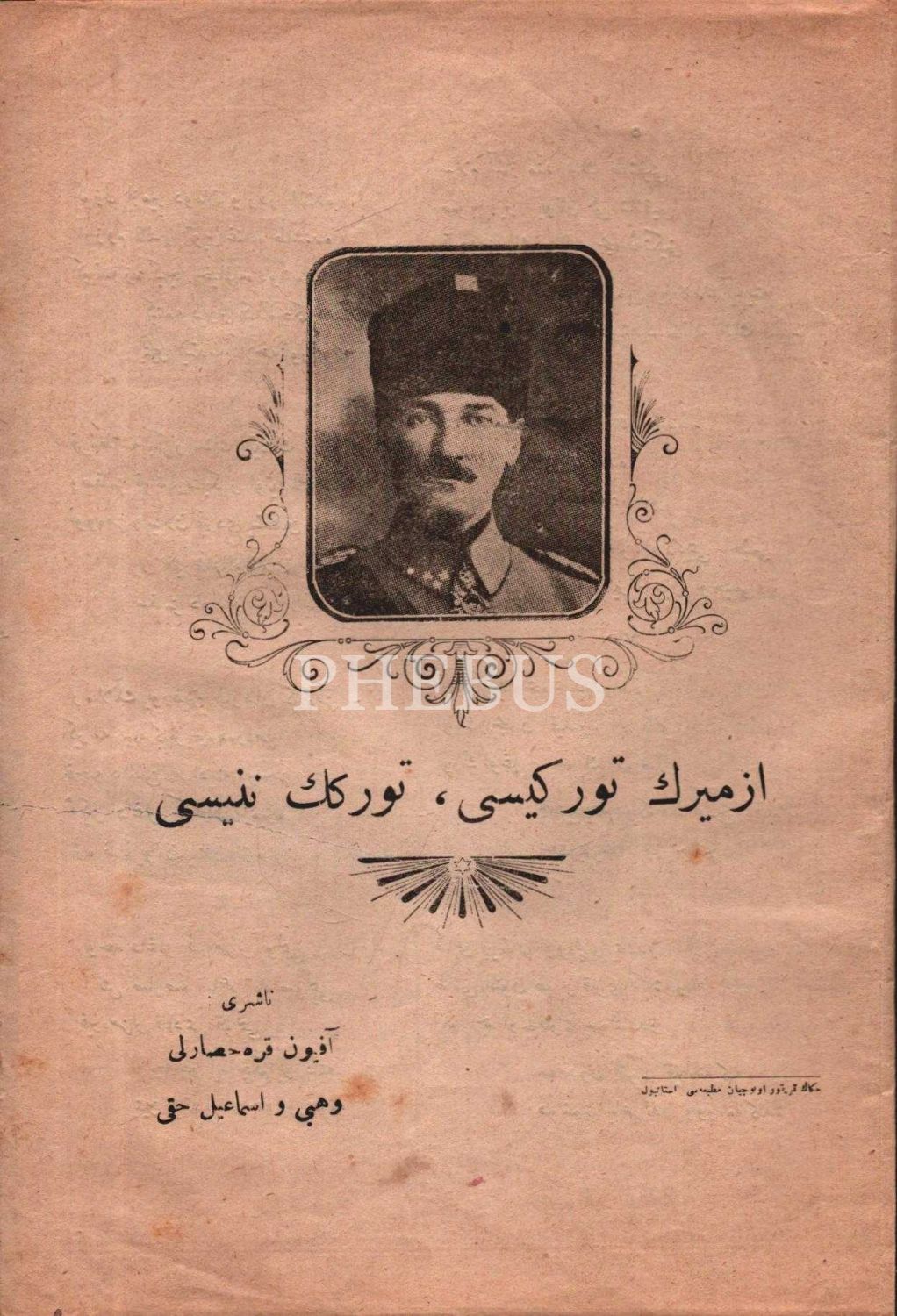 Kapağında Mustafa Kemal Atatürk görselli İZMİR´İN TÜRKÜSÜ, TÜRKÜN NİNNİSİ, neşreden: Afyonkarahisarlı Vehbi ve İsmail Hakkı, İstanbul, 15x23 cm