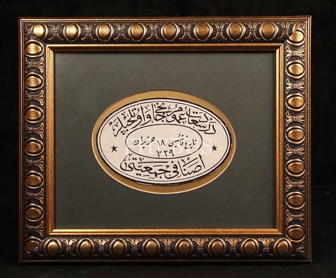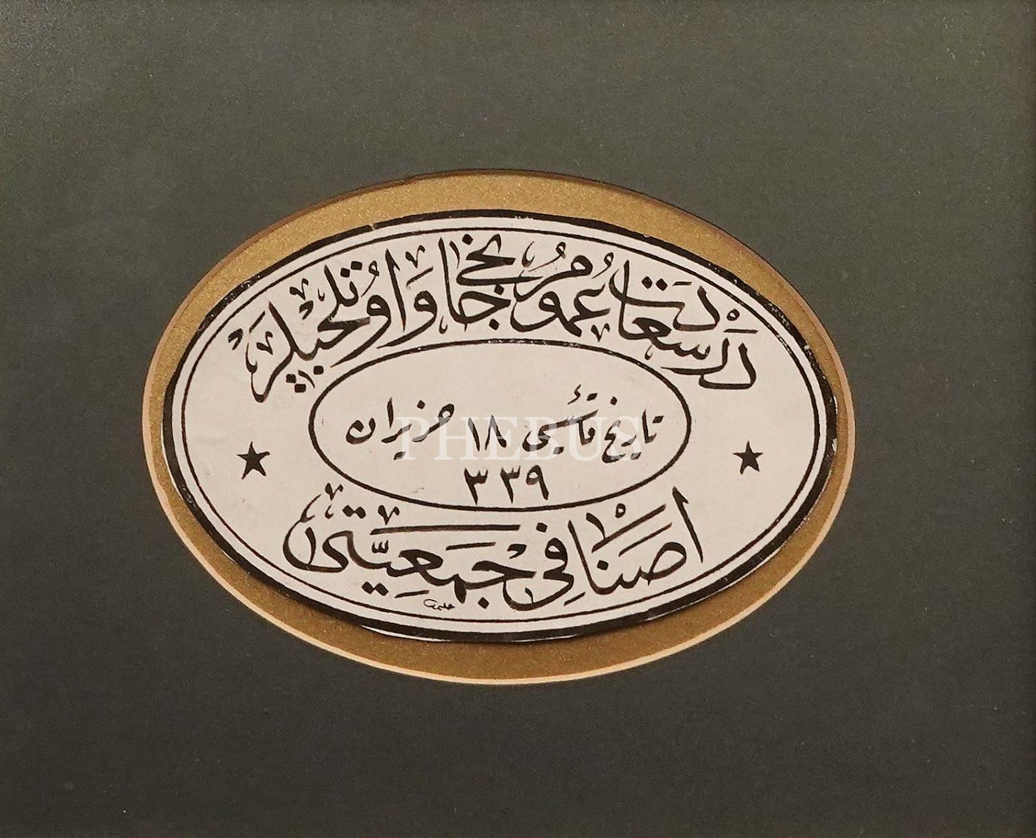 Hamit Aytaç ketebeli, el çekme, dersaadet Umumi Hancı ve Otelciler Esnafı Cemiyeti´nin tabela yazısı, çerçeve: 22x26 cm