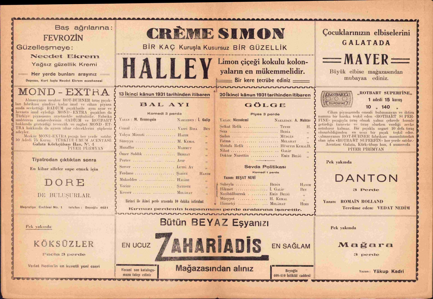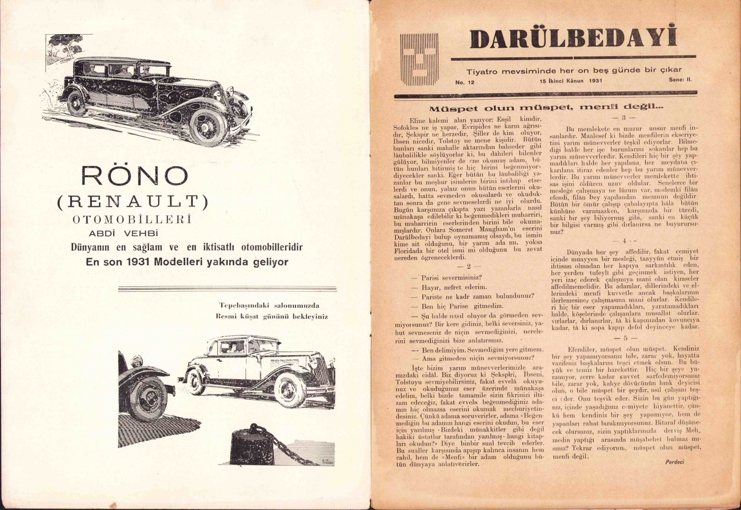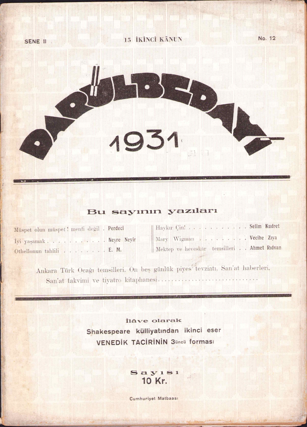 Darülbedayi mecmuası, 1931, resimli, 16 sayfa, 20x28 cm.