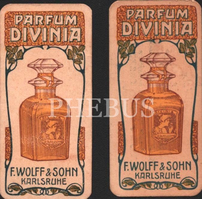 F. WOLFF & SOHN KARLSRUHE parfümü reklam kartı (2 adet), 4x8 cm