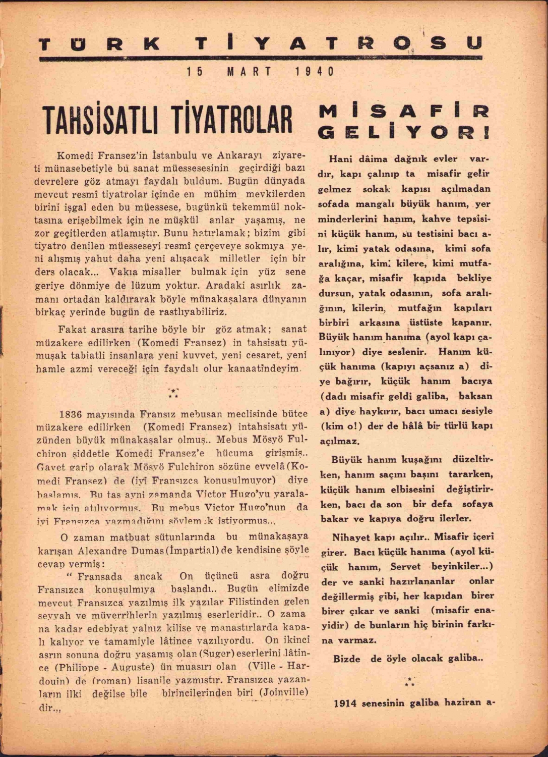 Türk Tiyatrosu 1939 - 1940, resimli, 16 sayfa, 20x28 cm.