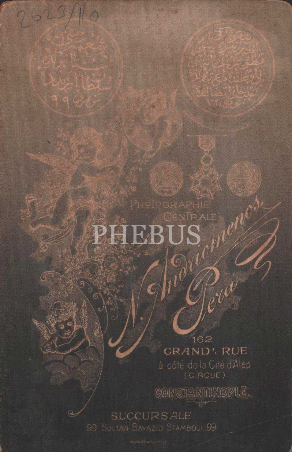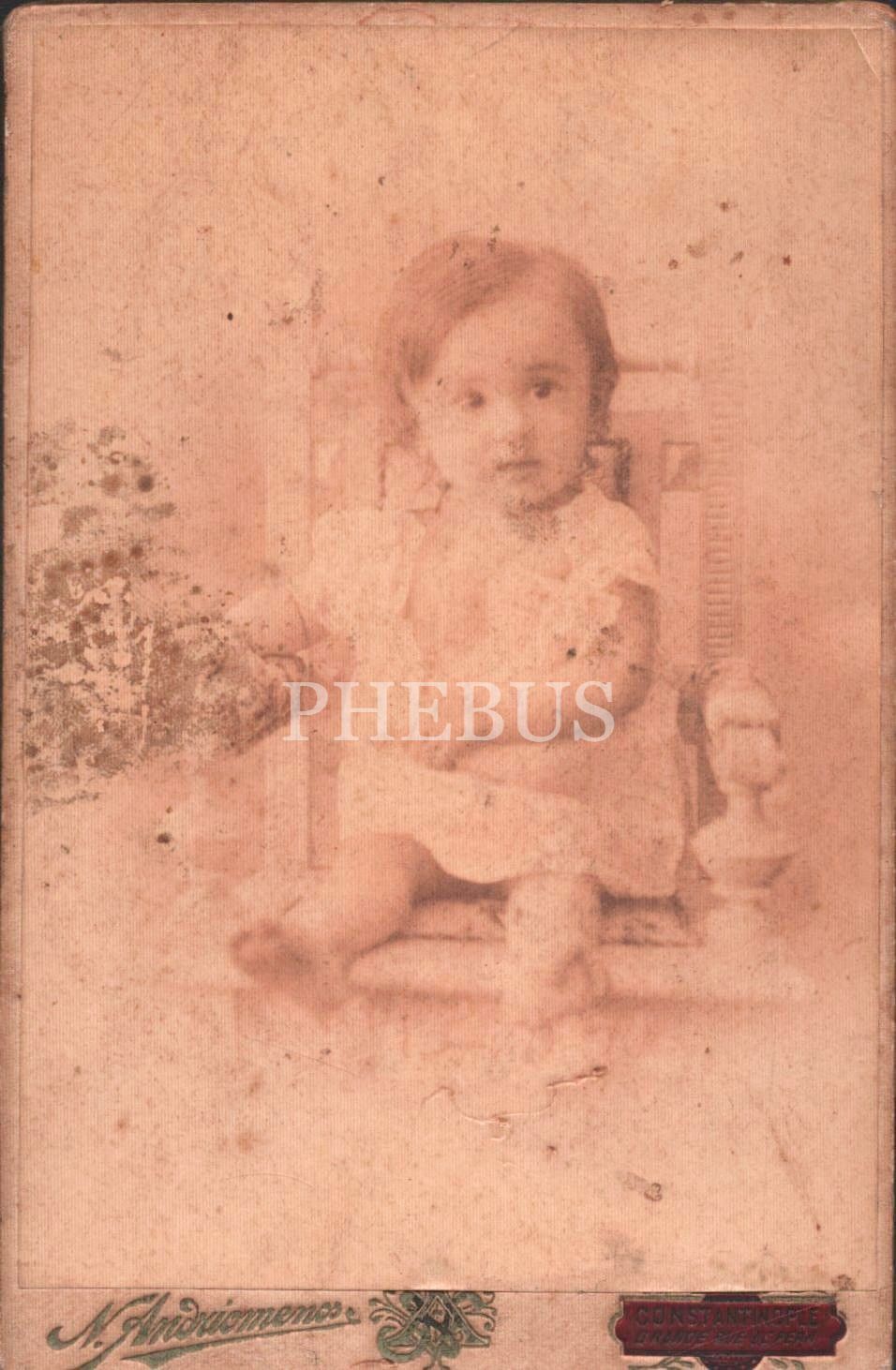 Sevimli bebeğin hatıra kabin fotoğrafı, N. Andriomenos Fotoğrafhanesi- Constantinople, 8x13 cm