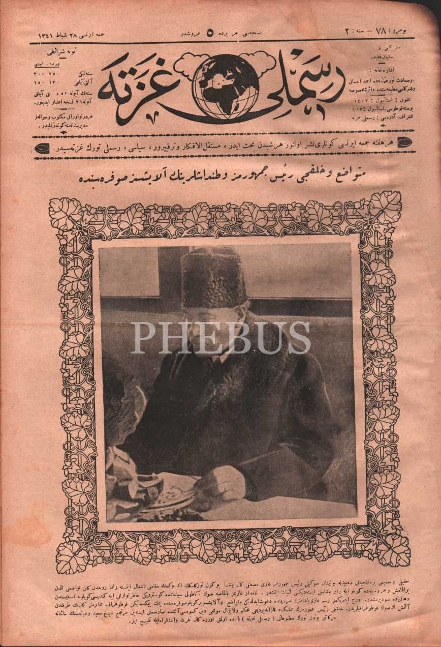 "Mütevazı ve Halkçı Reis-i Cumhurumuz" Mustafa Kemal Atatürk´ün, kapağını süslediği RESİMLİ GAZETE (No: 78), 28 Şubat 1341, 27x40 cm