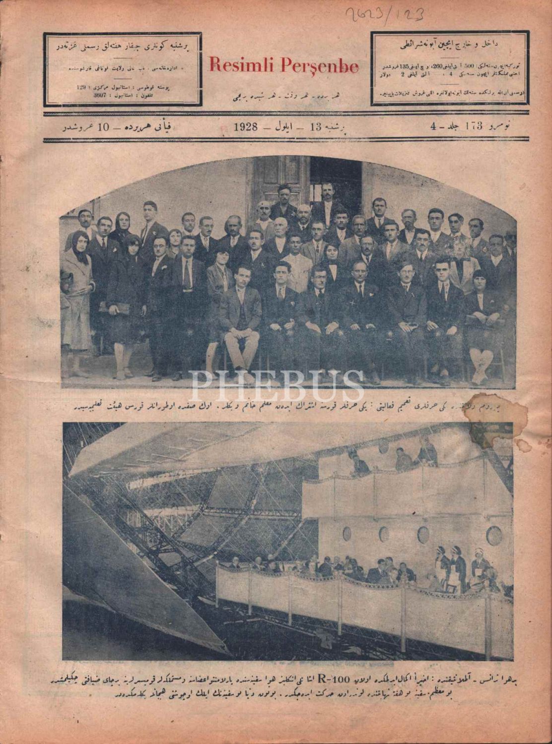 Yeni harfler toplantısındaki Mustafa Kemal Atatürk´ün, kapağını süslediği RESİMLİ PERŞENBE (No: 173), 13 Eylül 1928, 27x36 cm
