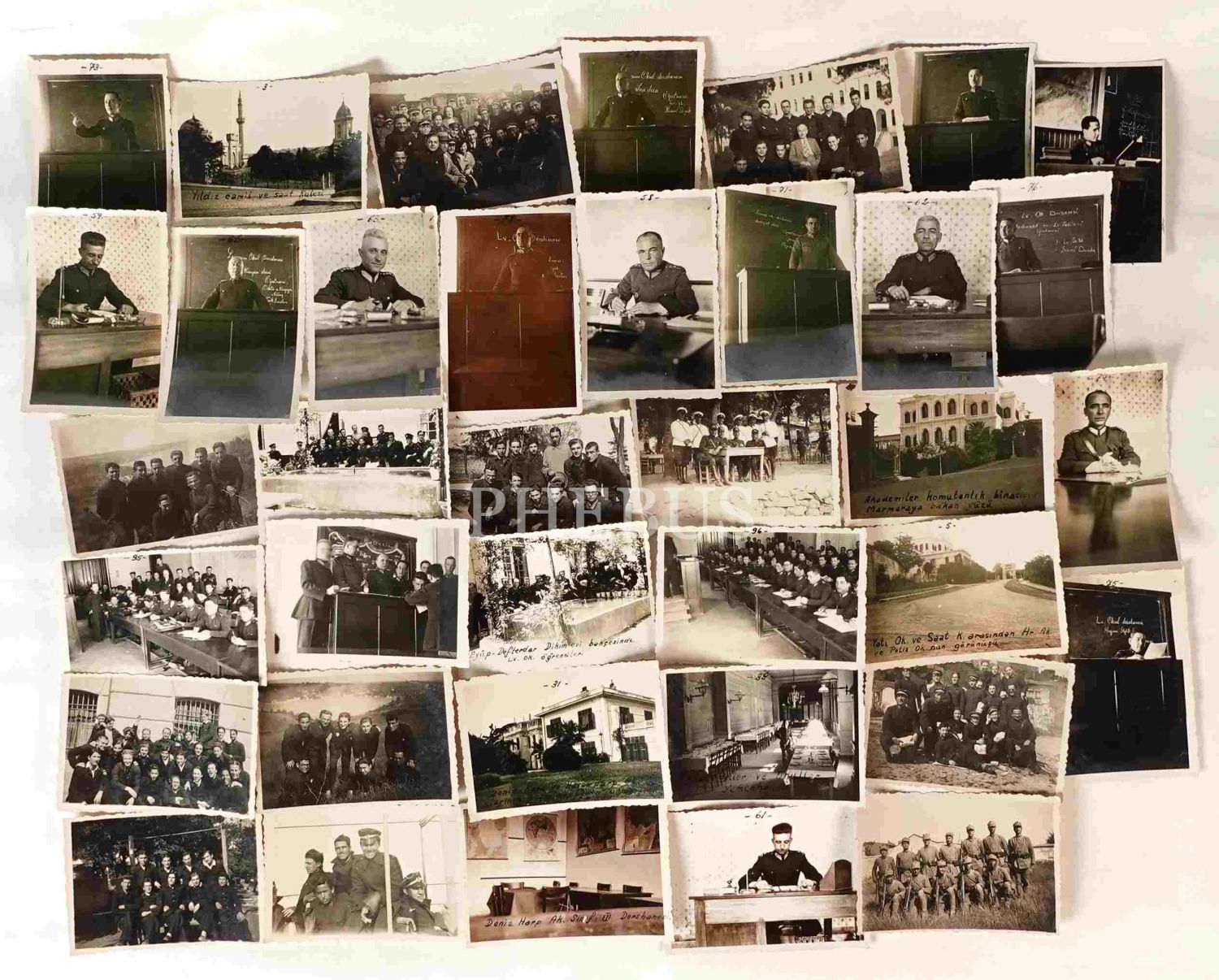 Kuleli askerî okul öğrencilerinin 1936-37 yıllarına ait okul hatıraları (37 adet mini fotoğraf), her biri: 6x9 cm