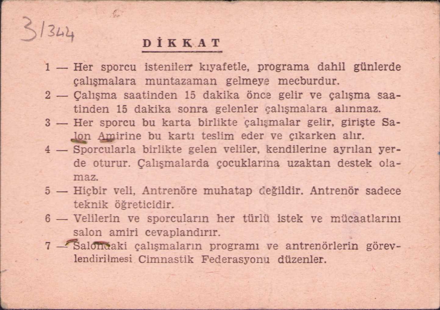 Türkiye Cimnastik Federasyonu giriş kartı, 12x8 cm.
