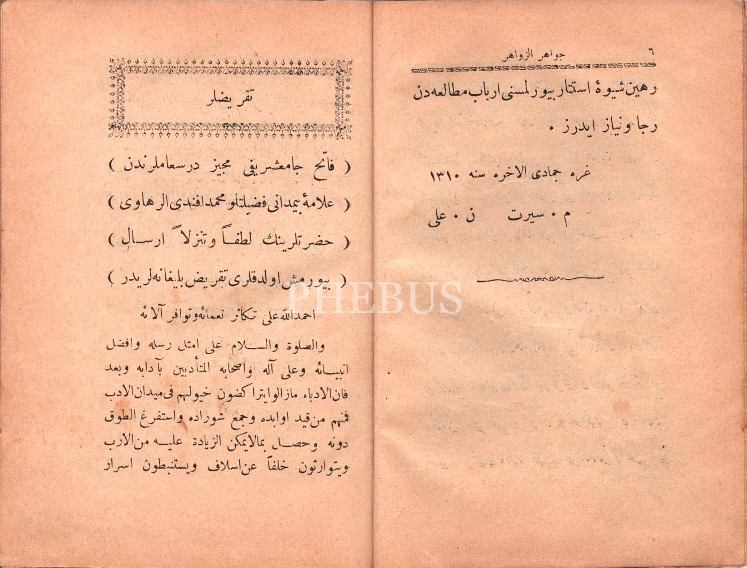 Osmanlı armalı ve ay yıldızlı cildinde CEVÂHİRÜ´Z-ZEVÂHİR (3 cilt bir arada), N. Ali & M. Siret, Matbaa-i Hüseyin Enver, İstanbul 1310, 84+144 s., 12x17 cm