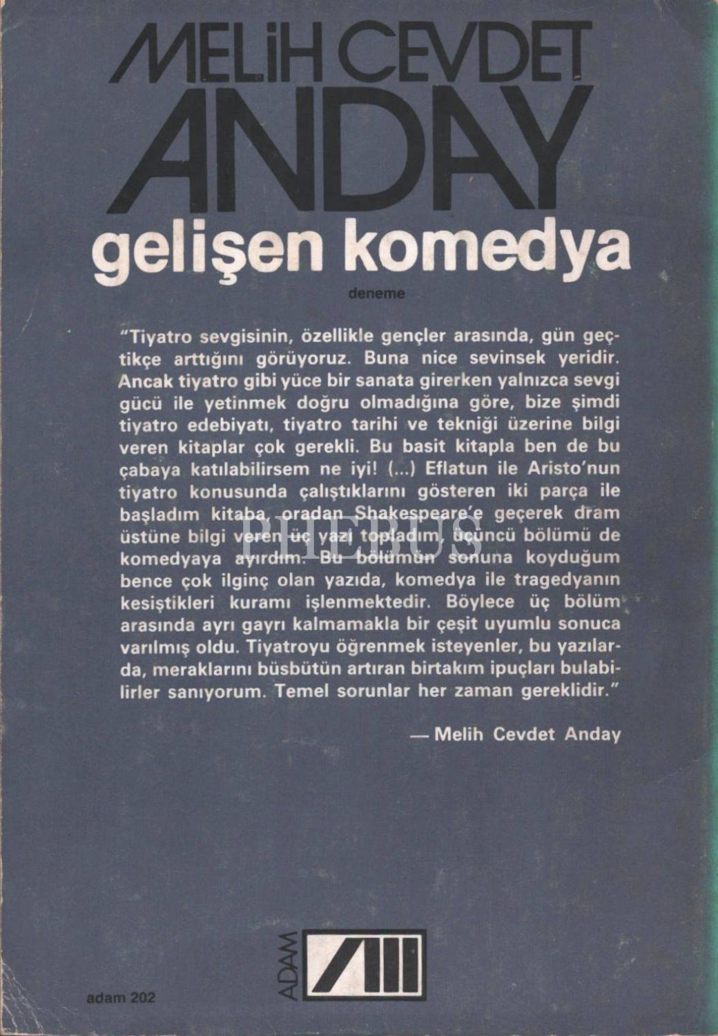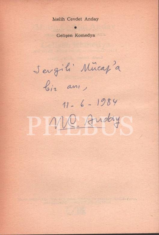 Yazarı Melih Cevdet Anday´dan ithaflı ve imzalı GELİŞEN KOMEDYA, Adam Yayınları, İstanbul 1984, 95 s., 14x19 cm
