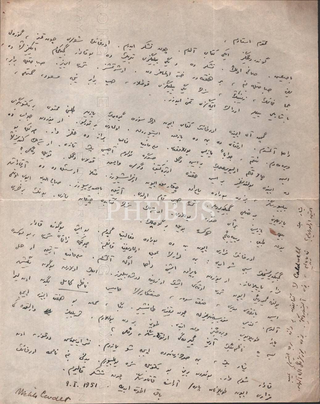 Yeni yıl tebriğiyle girizgâh yapılan mektup, "Yaşar Bey, ben son zamanlarda epeyce şiir yazdım Neşredilmemiş dokuz, on kadar şiirim var. Bunlardan birini bu mektubla size yolluyorum. Bedelini benim namıma Orhan´ın mezarı için toplanan paralar arasına katarsanız çok müteşekkir kalırım. Yaşar Bey Coldwell´in kitabından bir dane rica etsem ayıb etmiş olur muyum? Ne yapalım, bizi alışdırdınız. Biz de yüzsüzlüğü ele aldık." ifadeleri ile sona ermektedir.