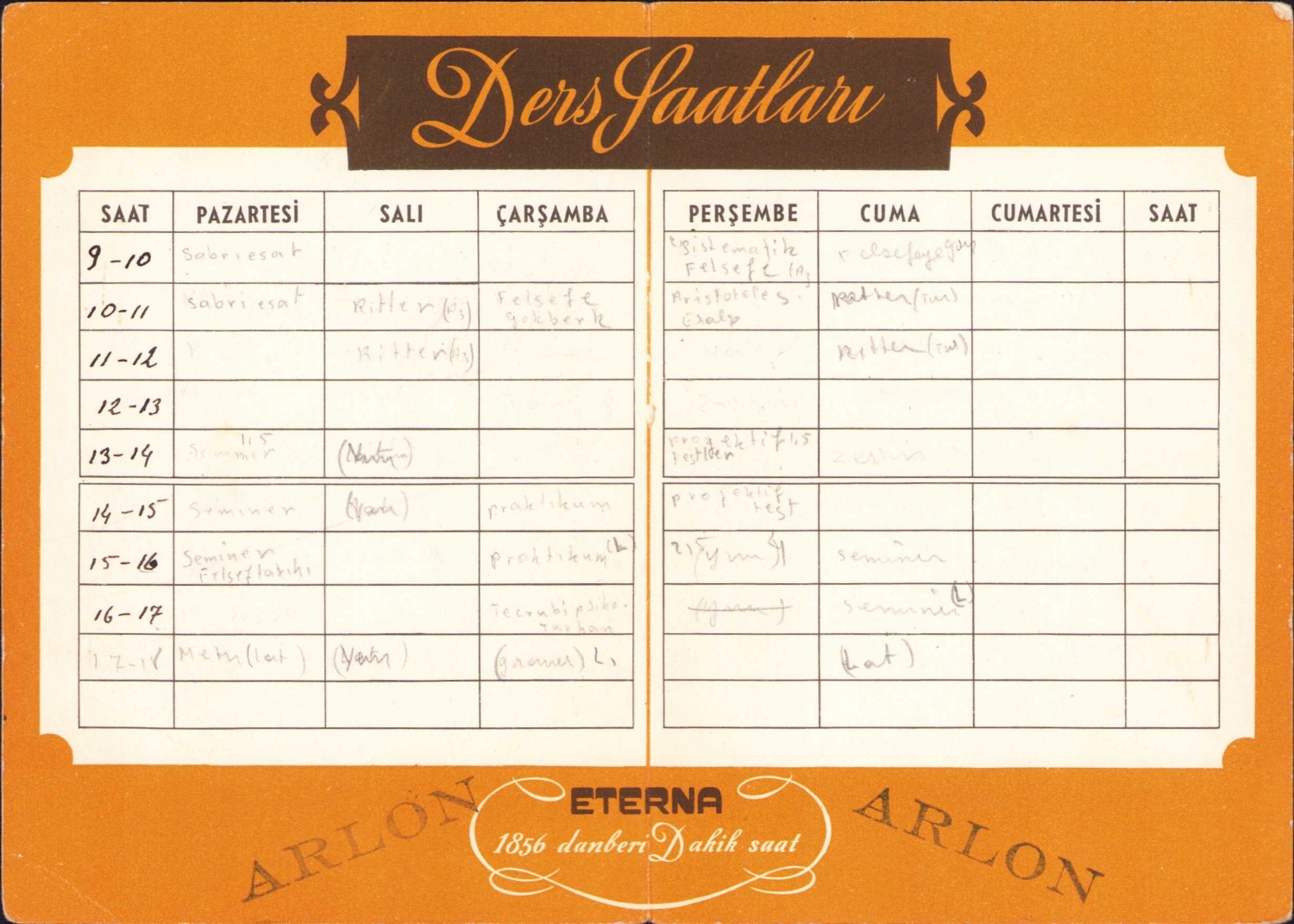 Arlon ders saatleri kartoneti, 20x14 cm.