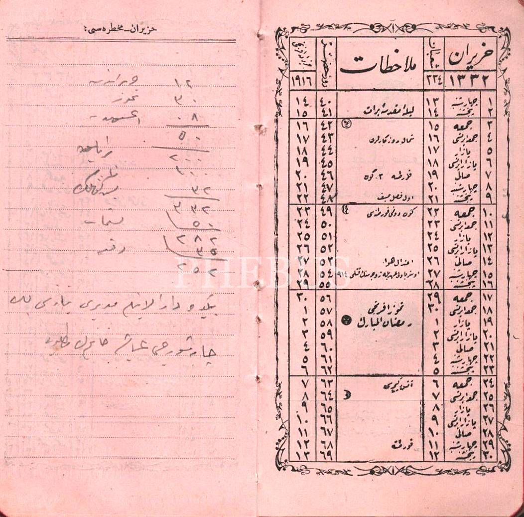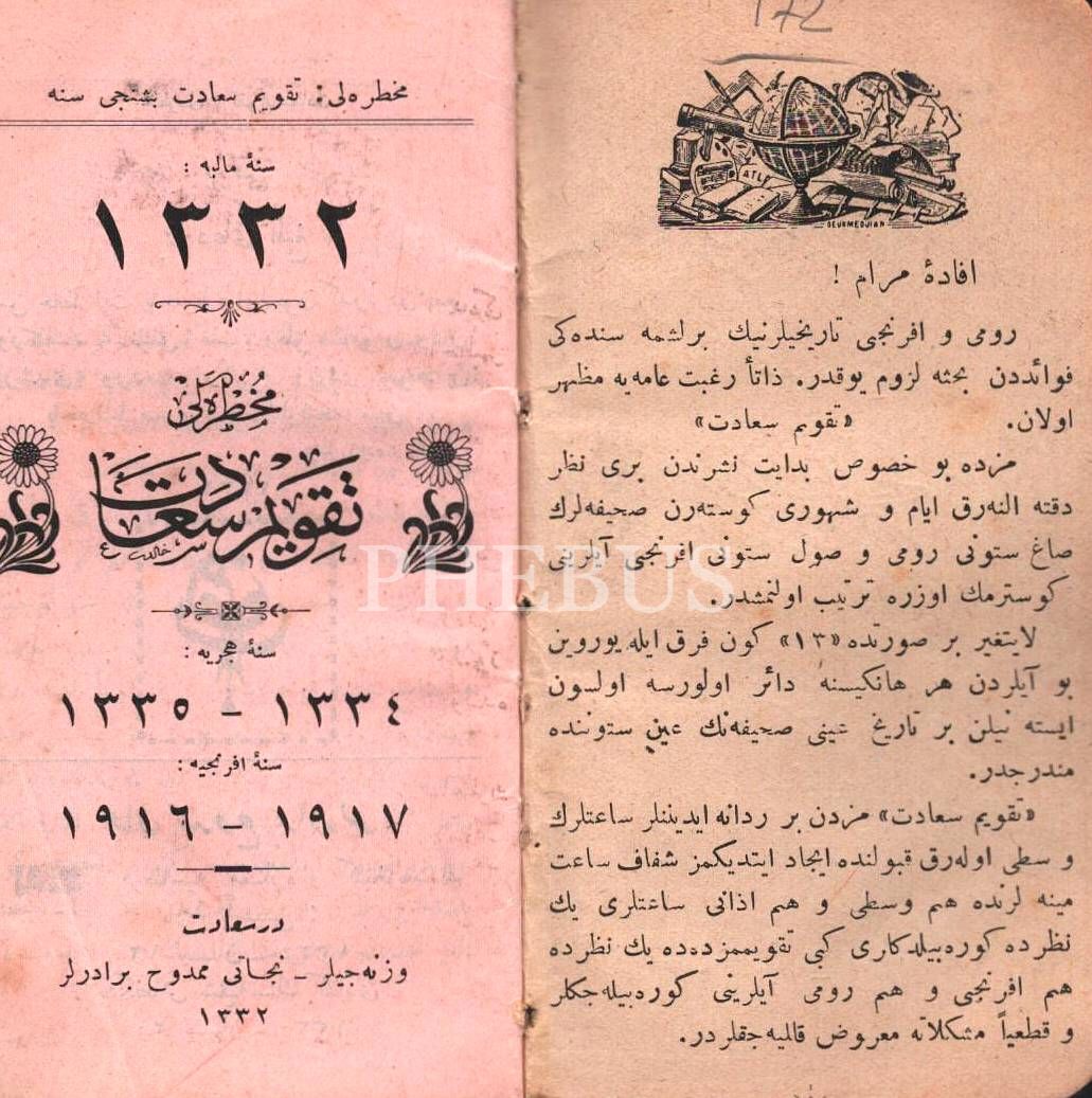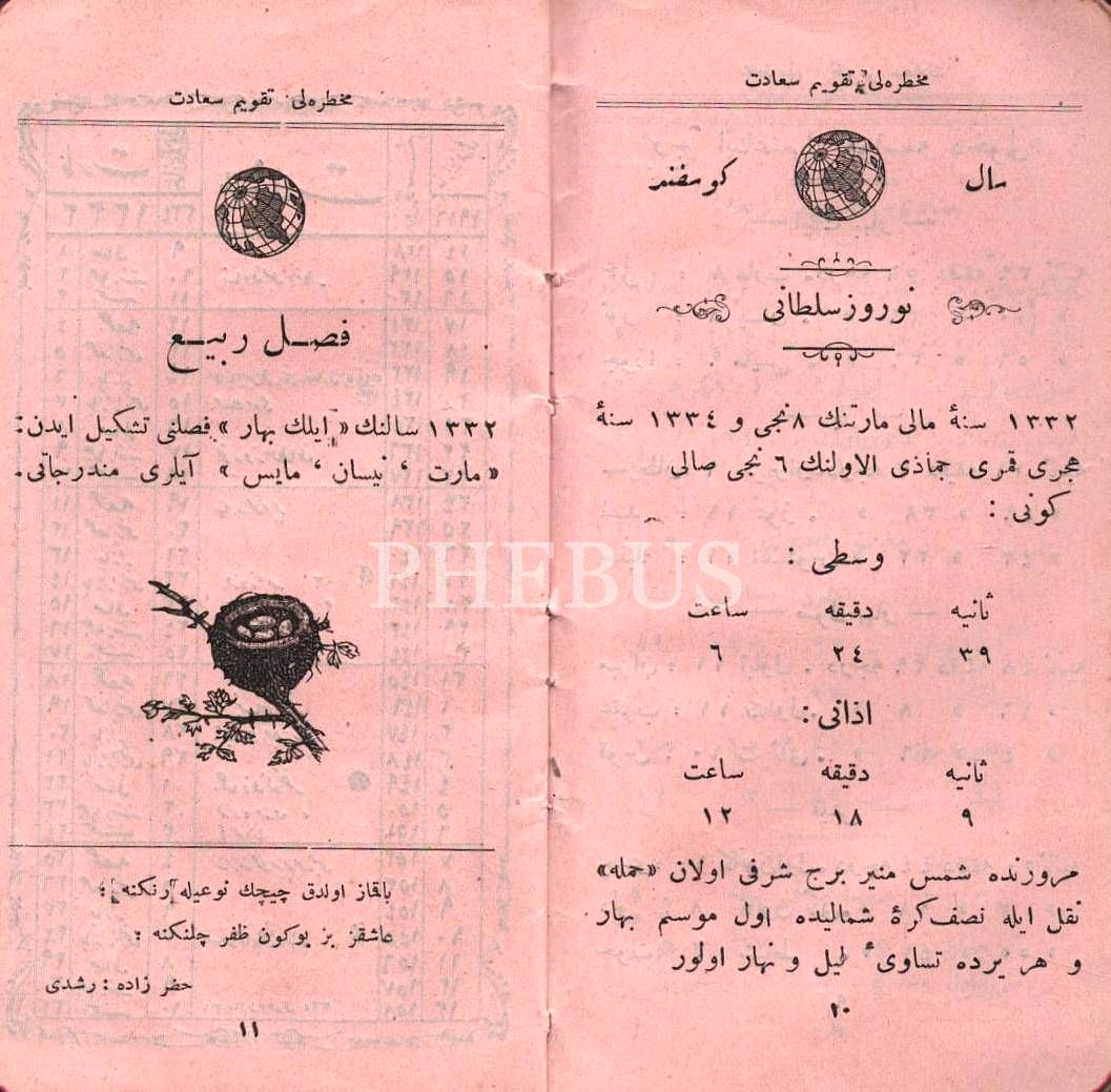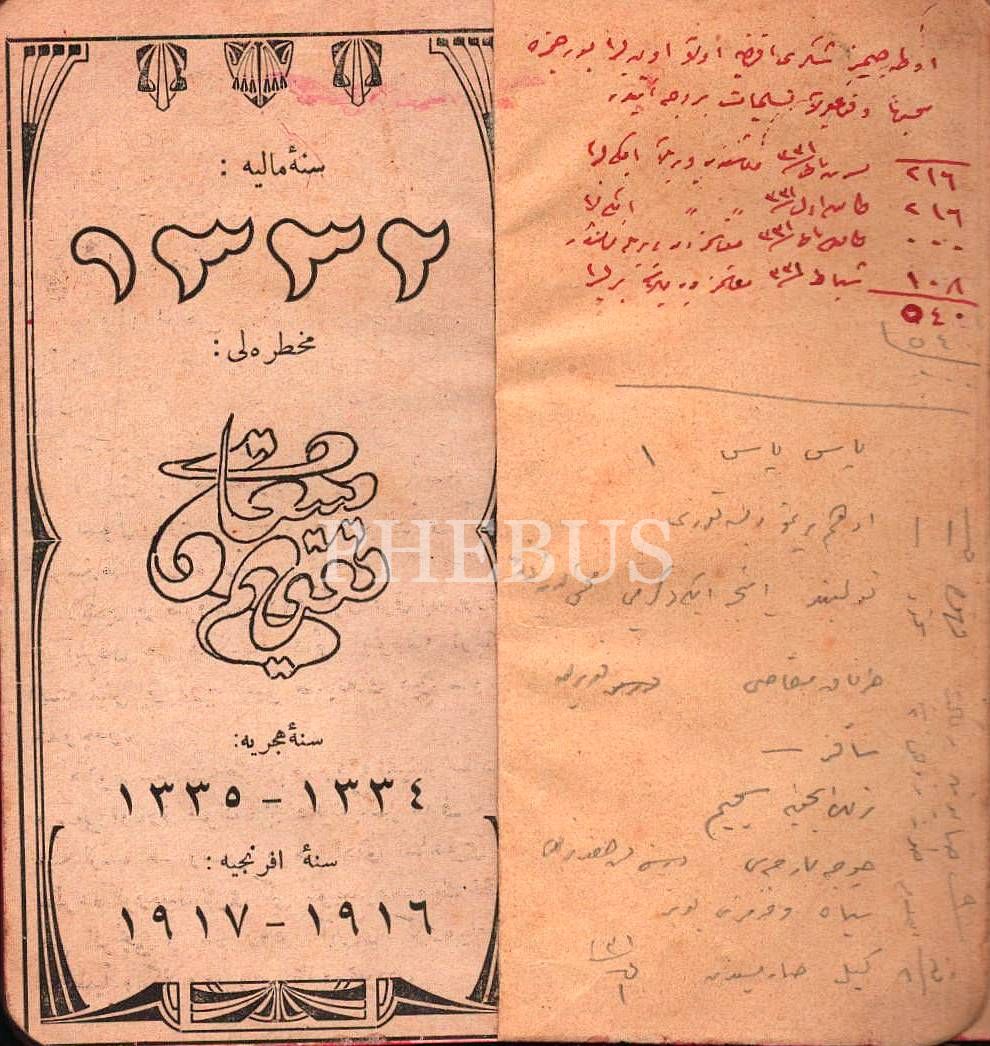 1332 Sene-i Mâliyye MUHTIRALI TAKVÎM-İ SAÂDET, İstanbul 1332, 48 s. + yazılı defter sayfaları, 7x14 cm