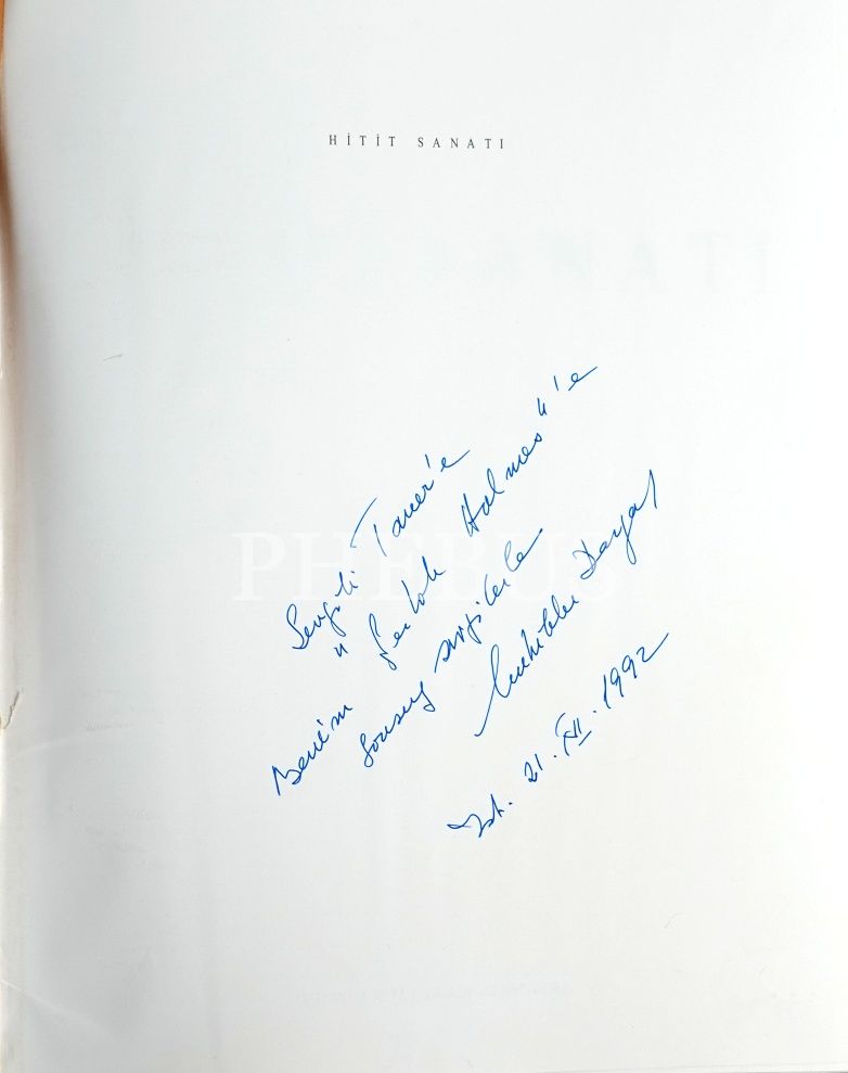 Türkiye´nin ilk kadın arkeologlarından Muhibbe Darga tarafından ithaflı ve imzalı HİTİT SANATI, Akbank Kültür ve Sanat Kitapları, İstanbul 1992, 373 s., 23x29 cm
