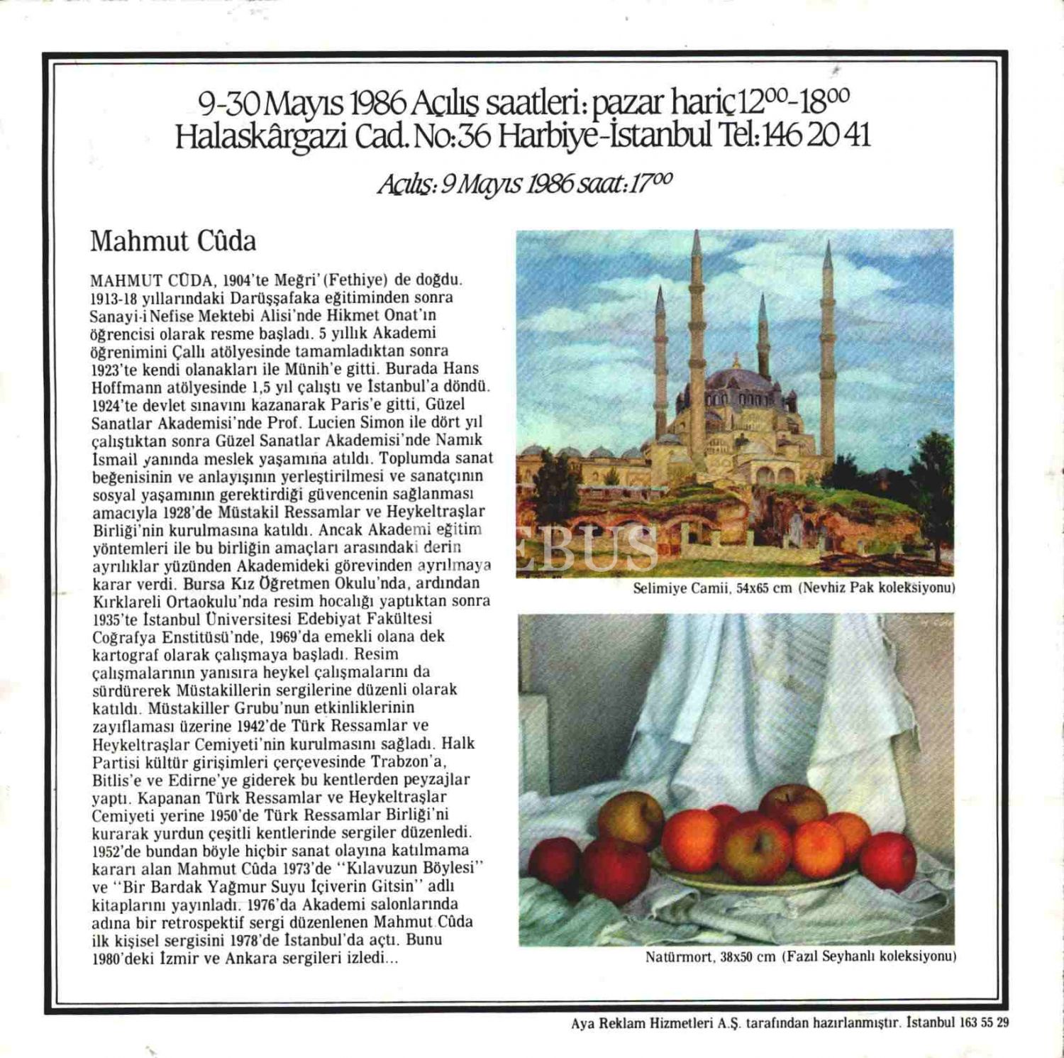Mahmut Cûda Resim Sergisi bröşürü (9-30 Mayıs1986), Garanti Bankası Sanat Galerisi, 21x21 cm