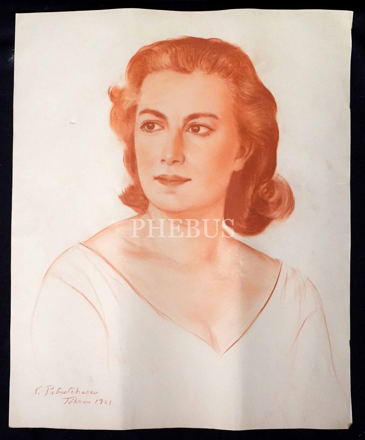 İranlı ressam tarafından imzalı pastel boya portre kadın çizimi, Tahran 1961, 45x55 cm