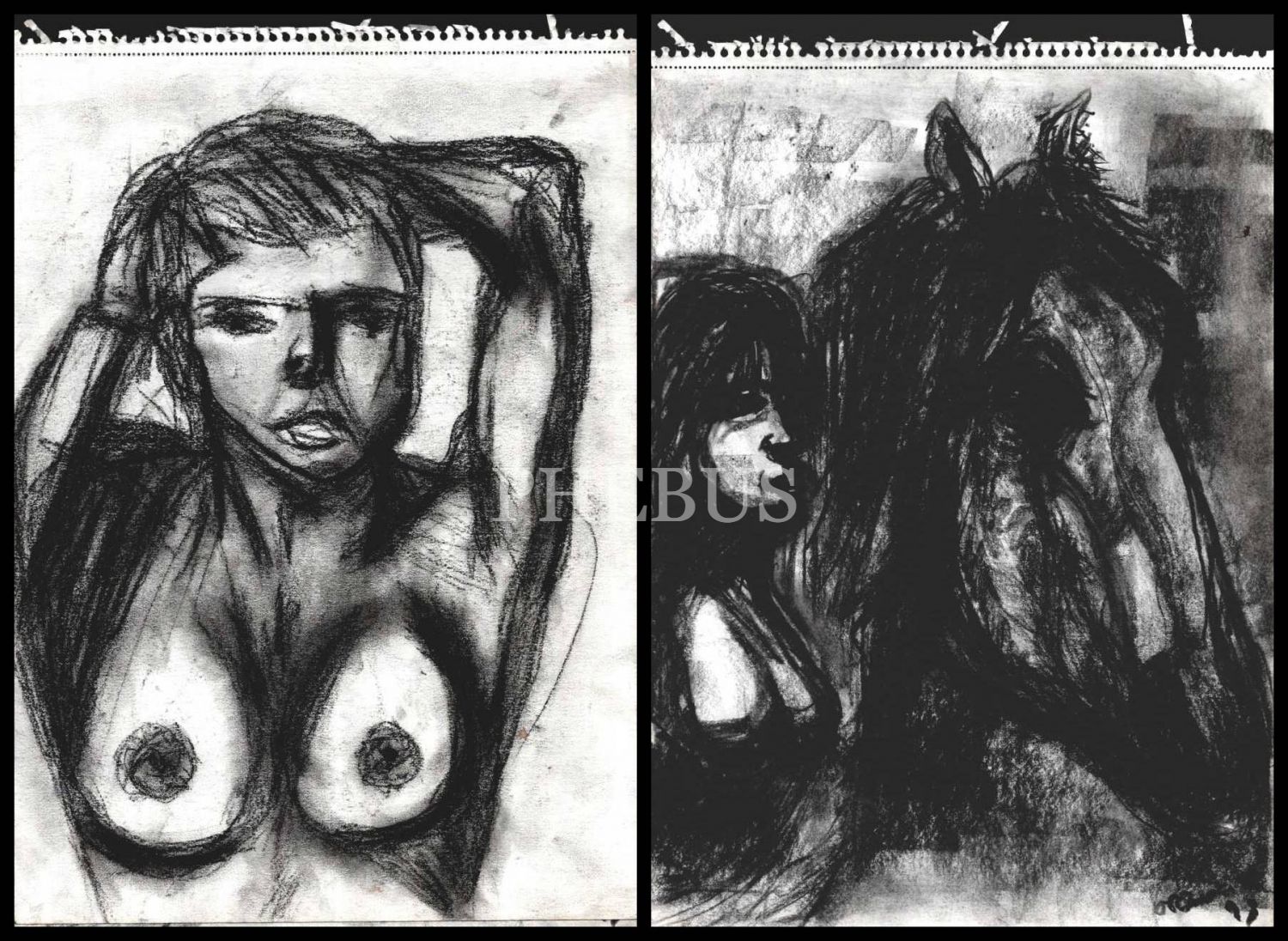 Ermeni sanatçı Nadia Özbıyıklıyan´ın defterinden, 2 adet karakalem kadın çizimi, 24x32 cm